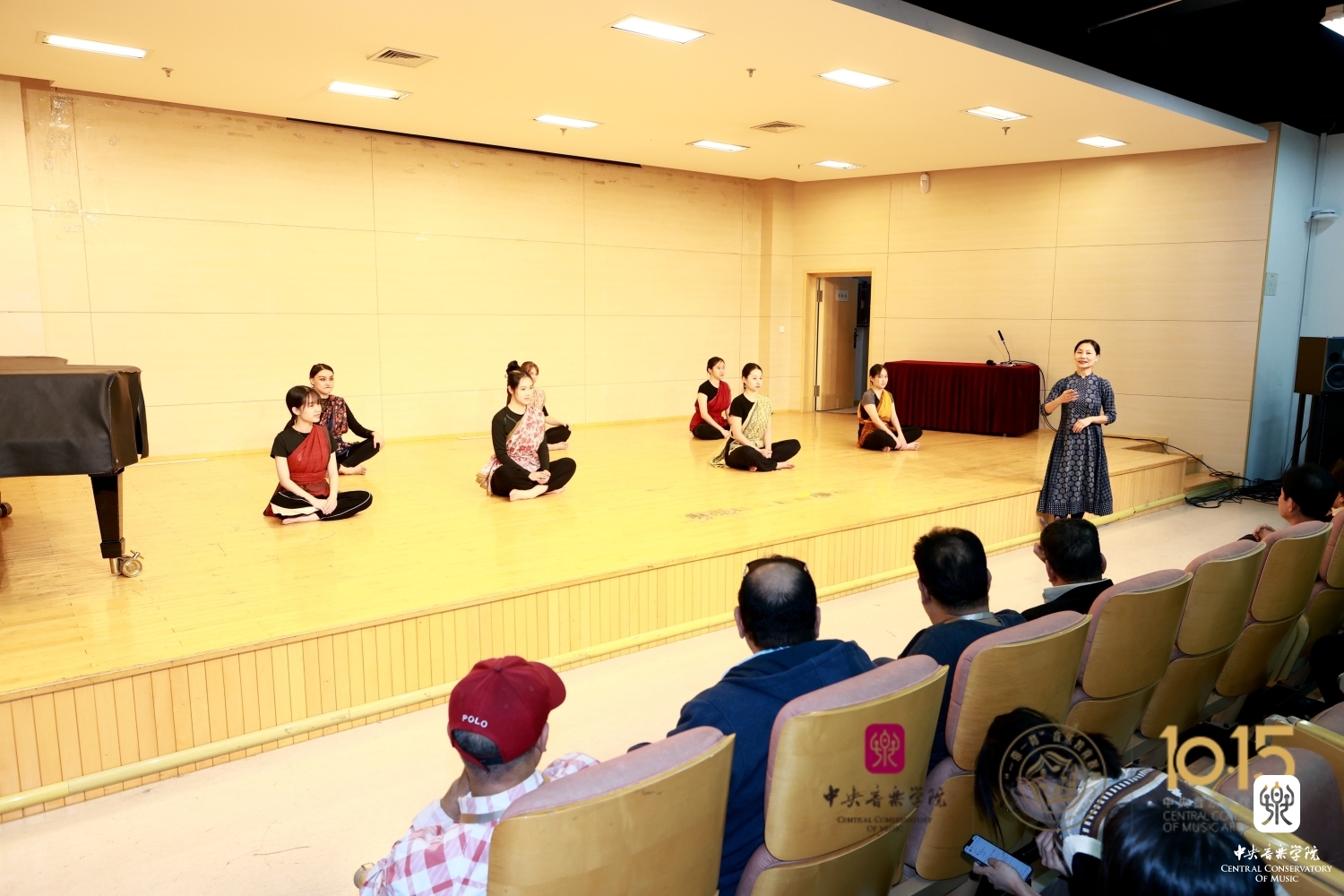 在701演奏厅,金珊珊老师为到场专家介绍了KY开元印度舞蹈选修课的开课情况和授课内容,并与修选课学生共同展示了印度婆罗多舞《阿普瑞普》。