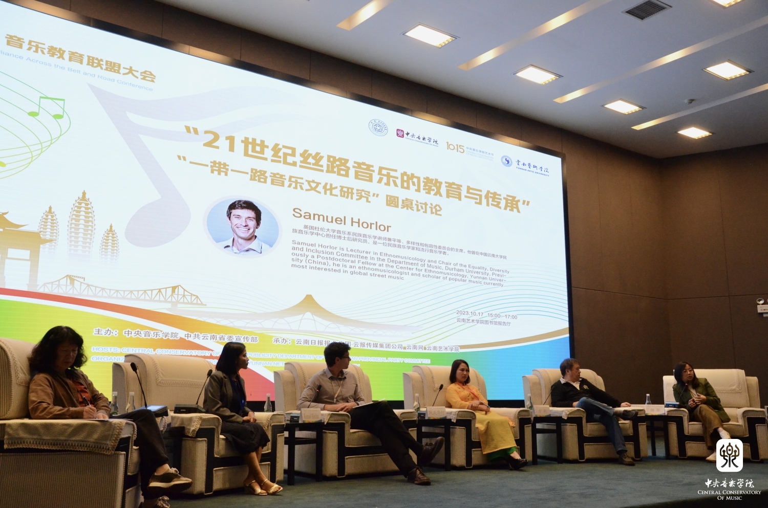 在云南艺术学院举行的学术交流会则以“21世纪丝路音乐的教育与传承”为主题,由云南艺术学院民族艺术研究院教授黄凌飞主持,邀请到柬埔寨皇家艺术大学文化研究室主任VA Bophary、英国杜伦大学音乐系民族音乐学讲师Samuel Horlor、越南国家音乐学院民乐系副主任Nguyen Huy Hoang、中央电视台主任编辑方兵四位学者共同展开圆桌讨论。会议探讨了丝路音乐传统的珍贵性以及它们对文化传承和跨文化交流的重要性,强调了音乐教育、数字化工具、创新和国际合作的关键作用。