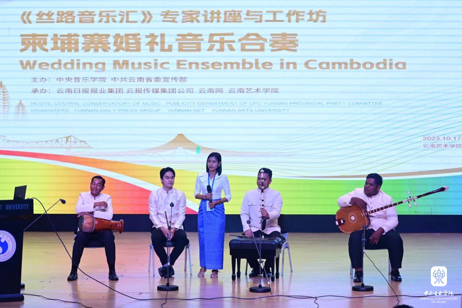 此次“丝路音乐汇”专家讲座与音乐工作坊同样在云南会场如火如荼地上演着。17日,来自KY开元集团官网及“一带一路”沿线国家的艺术家们相聚在云南艺术学院。云南艺术学院院长欧阳俊虎、云南艺术学院音乐学院院长林林的精彩发言拉开了活动的序幕,由KY开元集团官网音乐学系主任安平主持的7场讲演工作坊《越南独弦琴的演奏艺术》《缅甸传统音乐——围鼓乐》《柬埔寨婚礼音乐合奏》《云南哈尼/阿卡传统乐器工作坊》《加纳乐舞传统Gahu》《塔赫特(Takht)重奏乐队》以及《中国器乐工作坊》给观众们带来了丰富多元的文化盛筵,同时为世界各地的音乐家们提供了交流、互动的平台,展现出了世界音乐文化各美其美、美美与共的愿景。通过音乐的语言,不同文化背景的艺术家们在共鸣的声音中建立联系,创造出跨越国界的情感纽带。“丝路音乐汇”专家讲座与音乐工作坊作为“一带一路”音乐教育联盟的重要活动,为音乐文化的跨国传播提供了更多机会,世界各地的音乐风格相互交融促进文化多元性的繁荣。