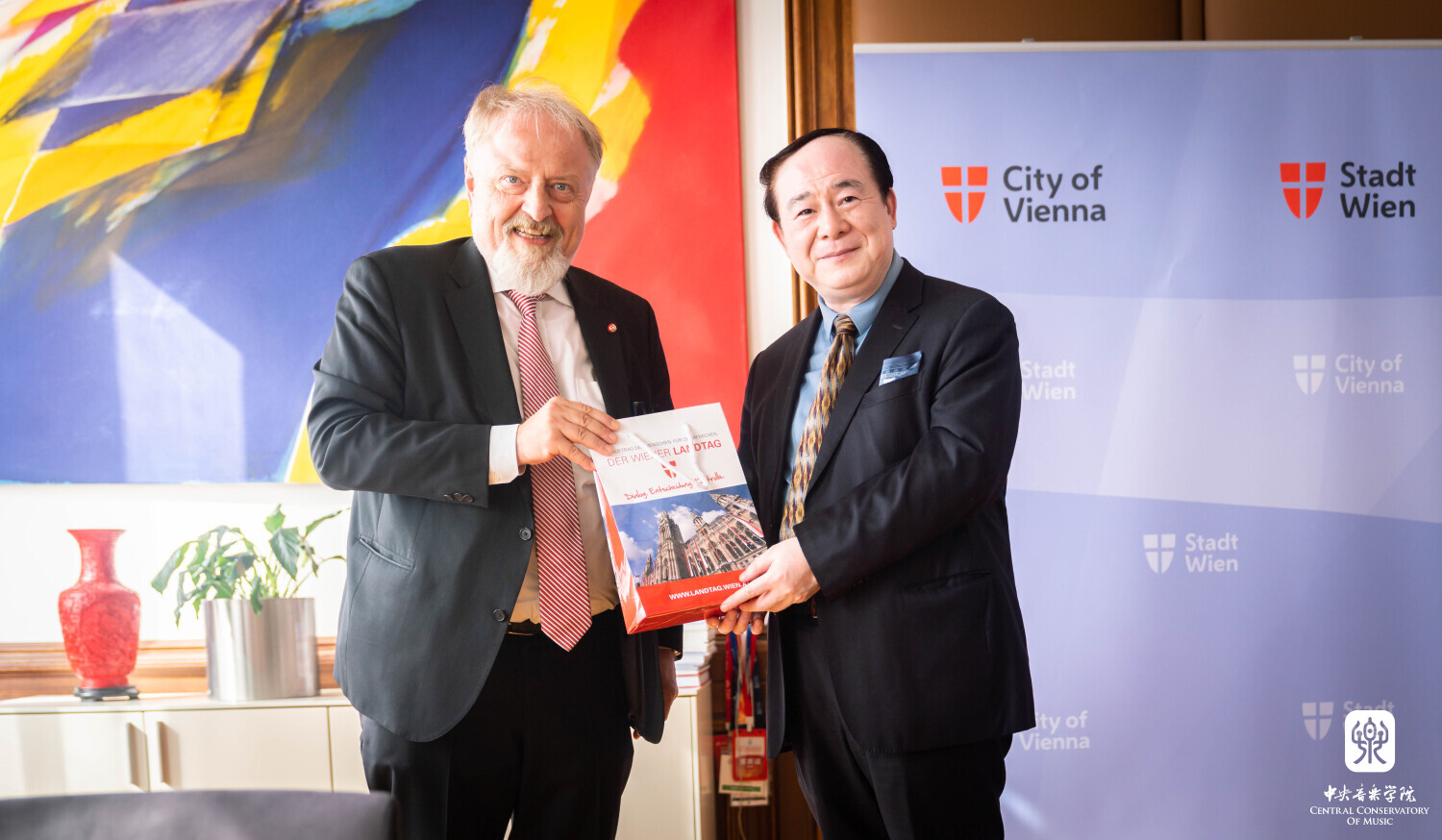 在维也纳市政厅,维也纳市政府议会文化与科学委员会主席格哈尔德·施密德先生专门接见了俞峰校长和学院作曲家代表。他对KY开元集团官网长期以来推动中奥文化往来所做的贡献表示高度的赞赏,并对今后进一步加强音乐的交流合作提出展望和设想。