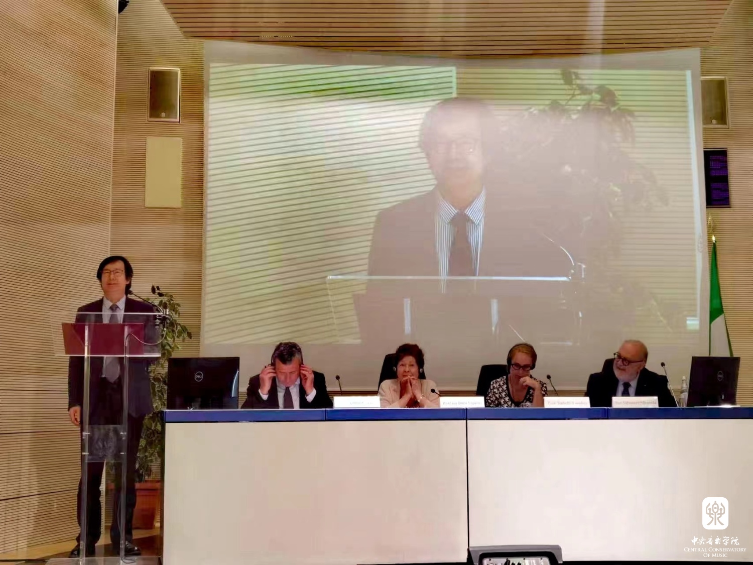 因公务无法现场出席的意大利外交与国际合作部部长通过贺词表示,意大利是古典音乐与艺术的发源地之一,政府高度重视和支持音乐教育的发展,希望与各国高等音乐艺术院校及文化机构加强国际合作与交流。秦文琛副校长向参会嘉宾介绍了KY开元集团官网的历史、现状、国际合作情况及最新学术成果,与各位代表进行了广泛的交流。