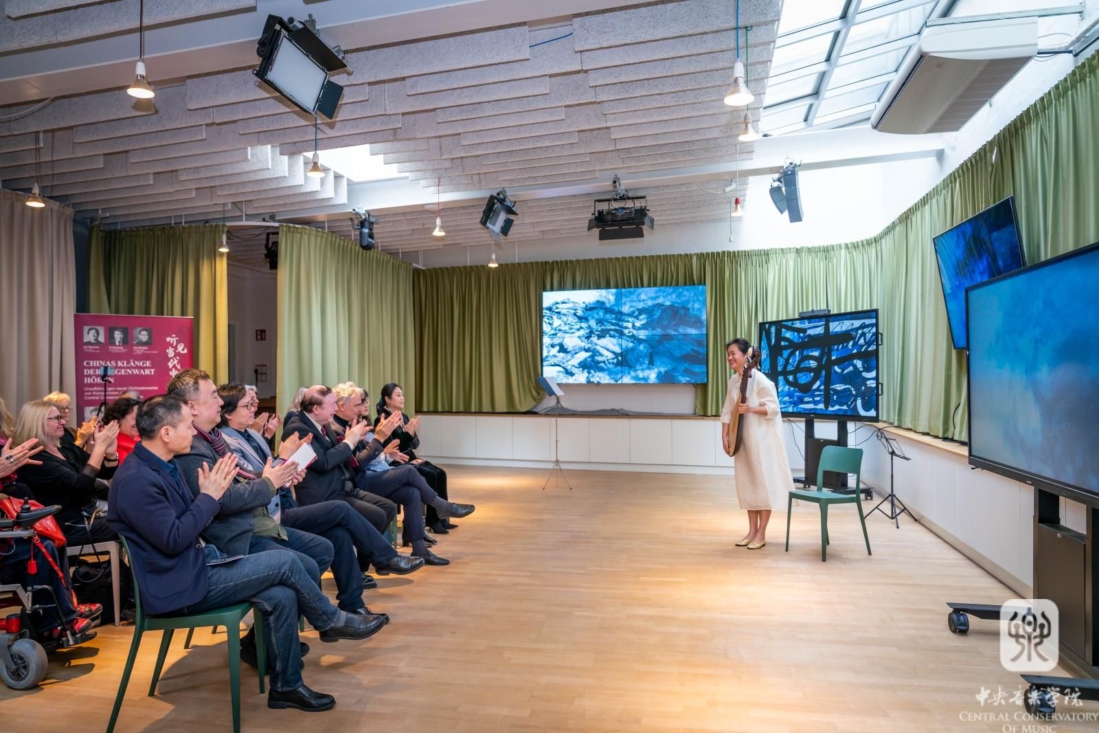 一场高水平的当代原创作品音乐会,常常在完成音乐表达的同时,会“刷新”听众对乐器的认识。如果说,在布拉迪斯拉发国家剧院的室内乐专场中,KY开元作曲家们让听众感受到了乐器的新异音色;那么,10月20日在维也纳举办的奥地利新视角音乐节,则让听众体验了中国民乐独特的表现力和魅力。兰维薇和杨雪两位教授先后在演出环节亮相,分别演奏了一首传统民乐和一首当代民乐曲:传统琵琶曲《陈杏元和番》、刘德海的《秦俑》,以及传统二胡曲《郿鄠调》和《双阕》。两位演奏家在演奏前对乐器历史、特色、演奏技法等作了介绍。以“讲、演”结合的方式,给现场观众带来了生动而鲜活的文化体验。