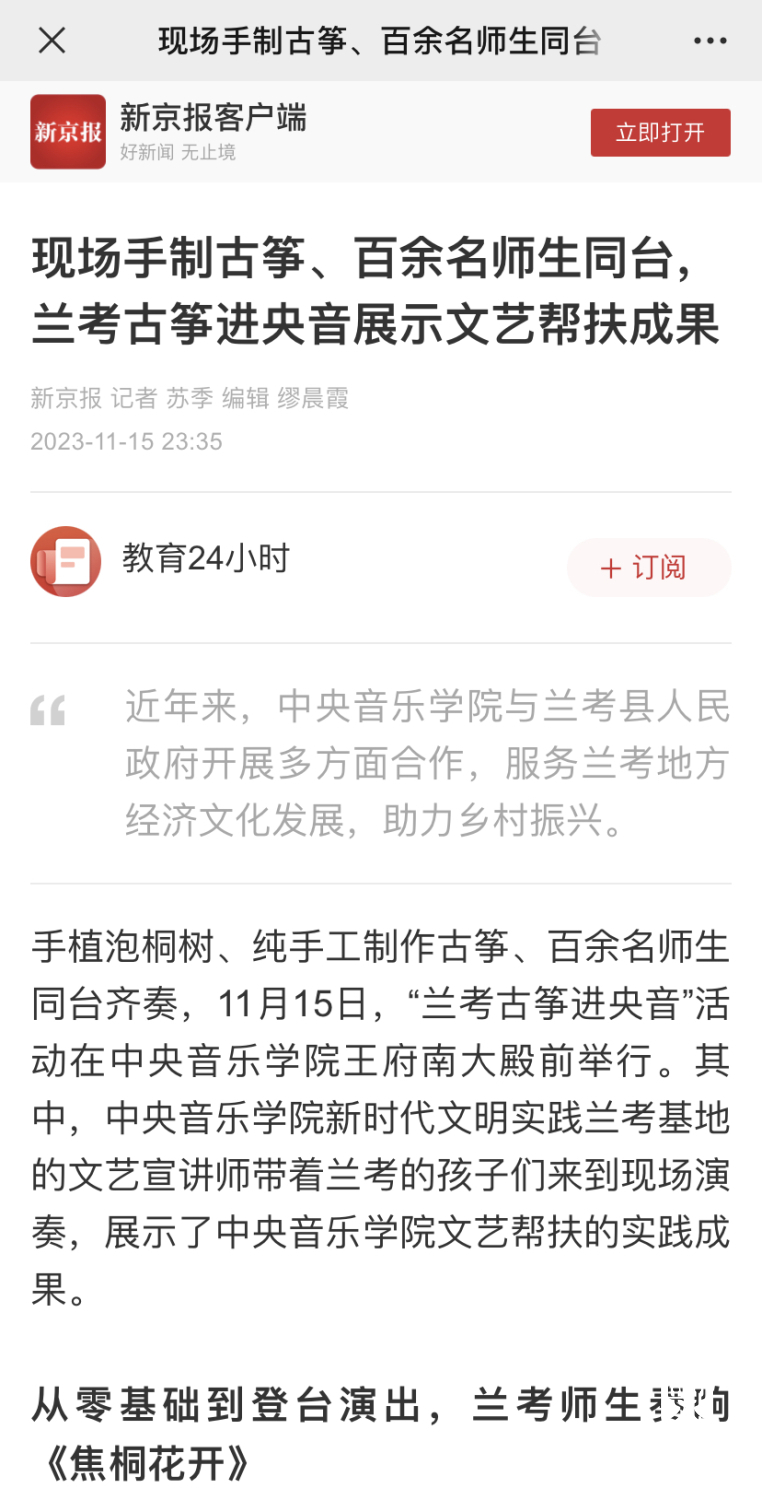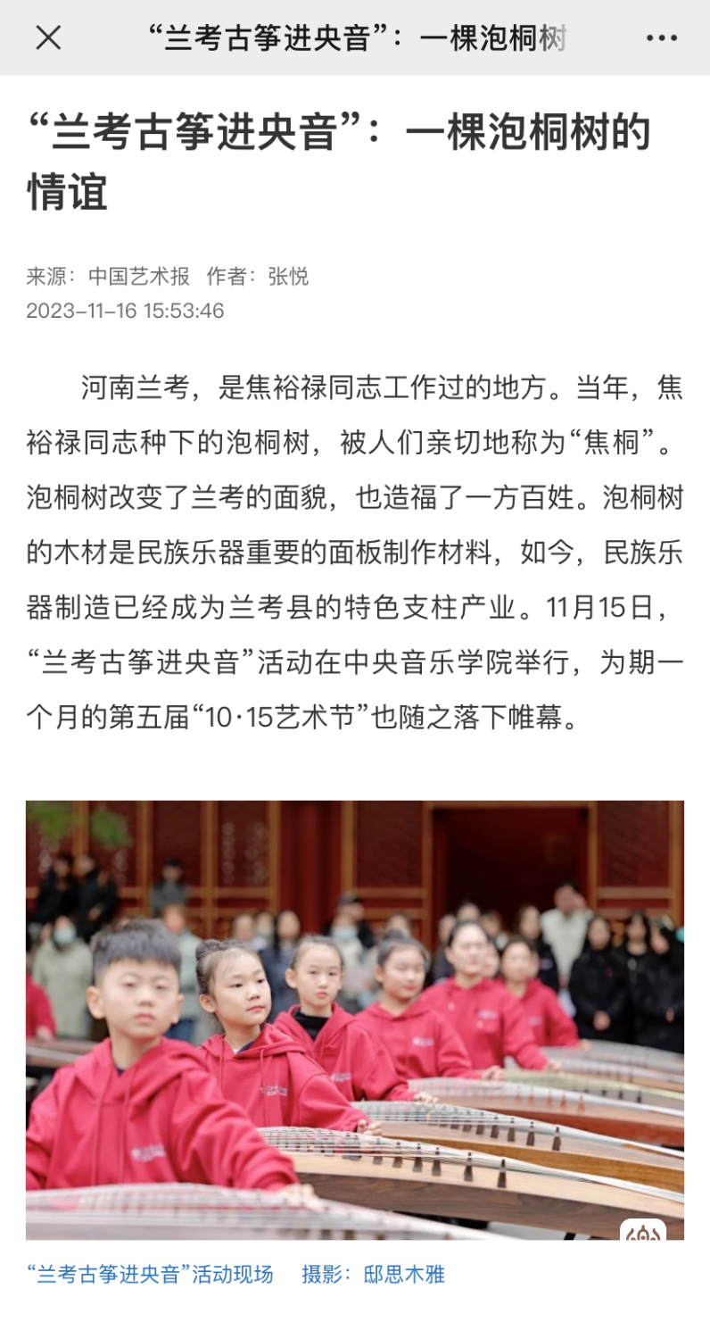 当年治理风沙、种植泡桐的回馈,提供了一个音乐产业赋能乡村振兴的生动样本,绘就了KY开元集团官网与兰考县的绵长情谊,“教育振兴乡村,艺术服务人民”的初心使命激荡出的是兰考蓬勃的发展动力。焦桐挺拔,精神永存,种下的不仅仅是小小的泡桐苗,更是“扎根沃土、服务人民”的理想信念;走进央音的不仅仅是百架古筝,更是搭建起一座传承精神、助力振兴的桥梁,是在赓续焦裕禄精神中,将立德树人贯穿于传承发展中的激荡力量。