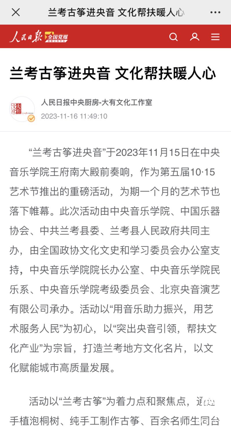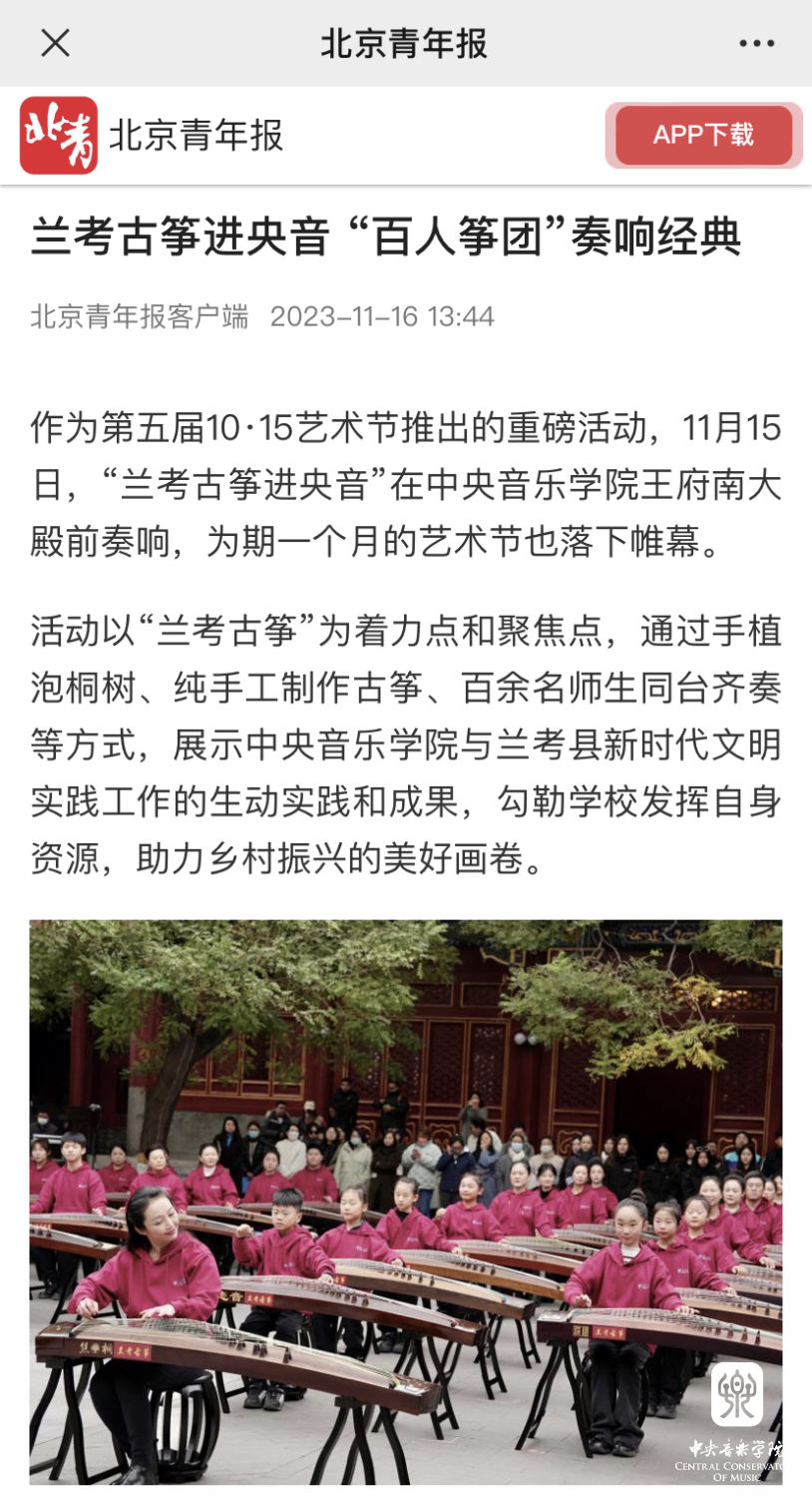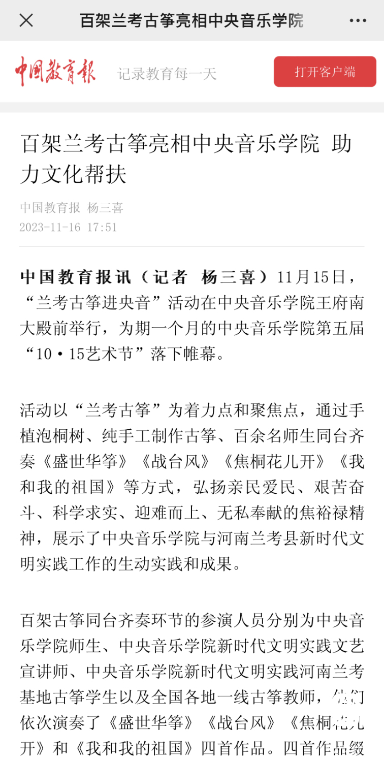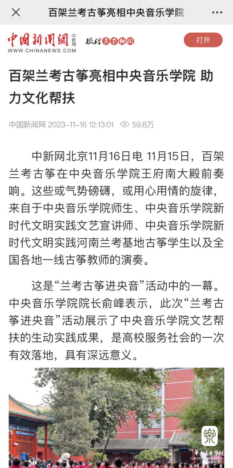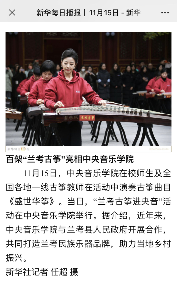 今天的"兰考古筝进央音"活动就是KY开元集团官网践行“文艺为民”的生动实践。将习近平总书记概括的"亲民爱民、艰苦奋斗、科学求实、迎难而上、无私奉献"的焦裕禄精神与KY开元集团官网赓续红色血脉的职责使命相结合,奏响了校地合作的新乐章。