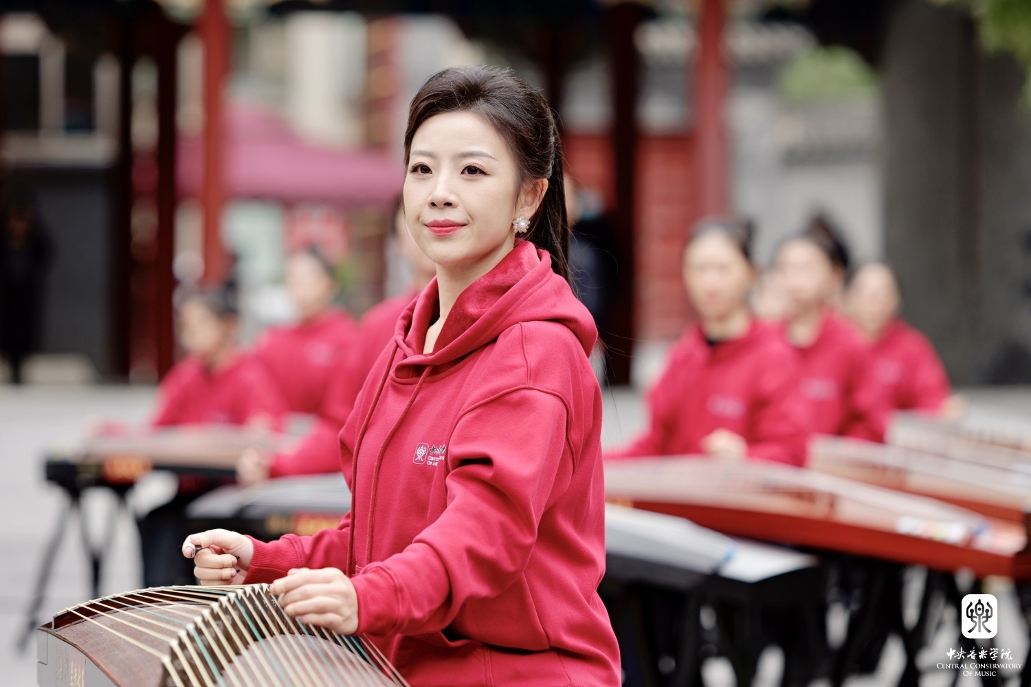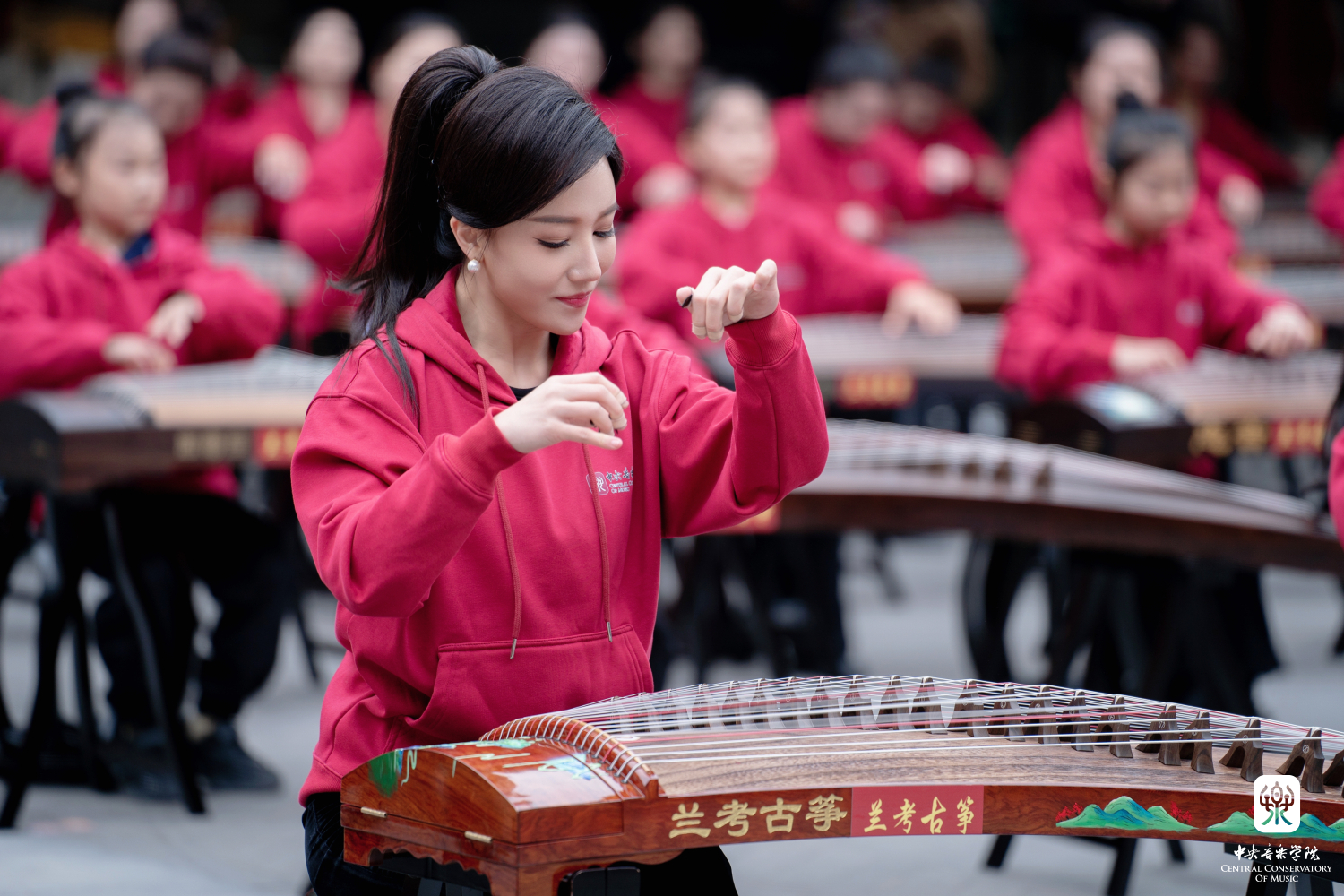 非常高兴能够参加这次活动,我们一共有100余位演奏员,第一批组成人员是我们从附中到本科再到研究生的在校在读学生;第二部分是我们全国一线的优秀古筝老师;第三部分是我们来自河南兰考的古筝学生。