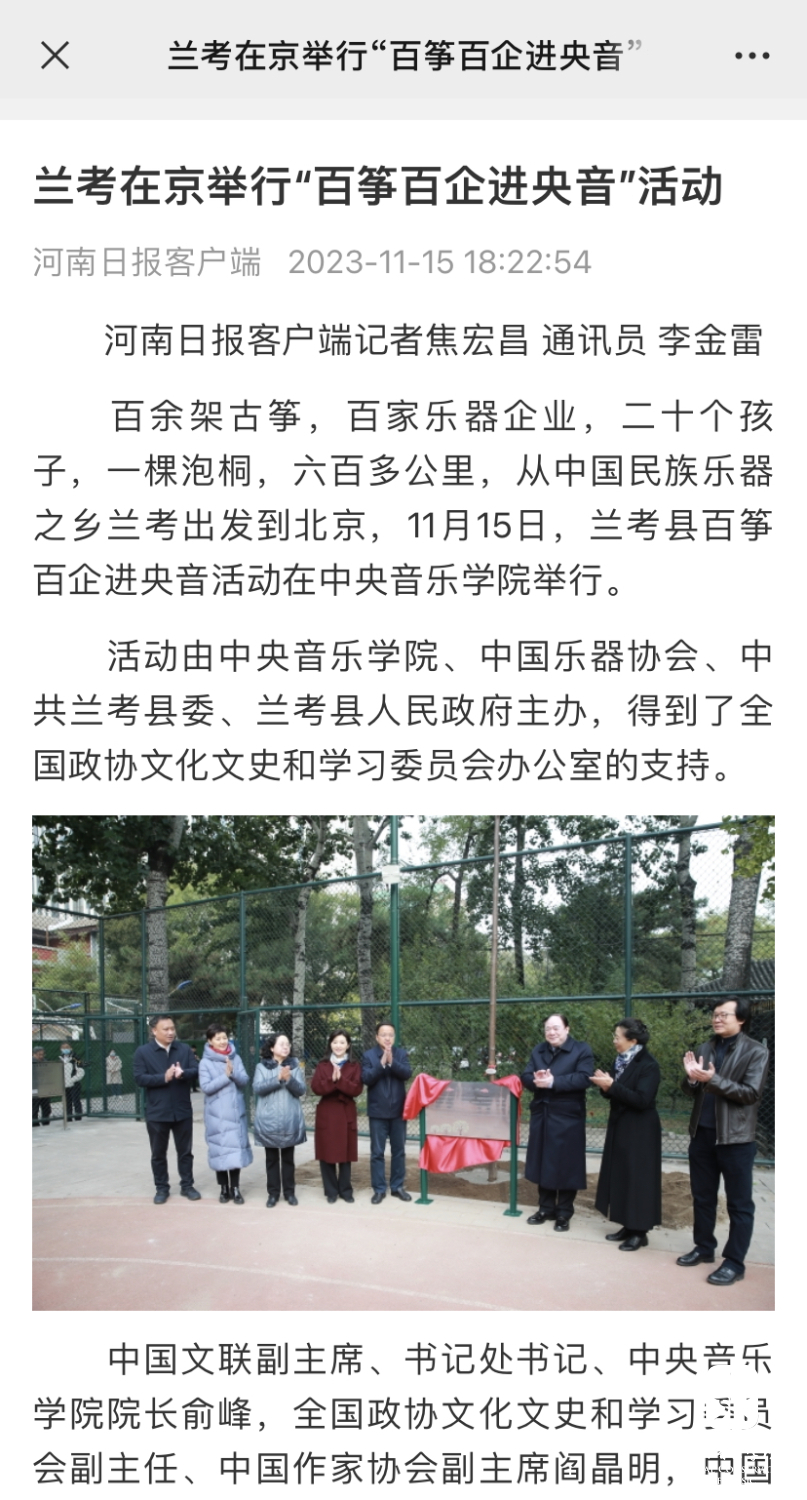 出席此次活动的嘉宾还有:兰考县领导张卫波、王旭鹤,中国歌剧舞剧院艺术培训中心主任余音,兰考县百家民族乐器企业、兰考乐器工匠等。
