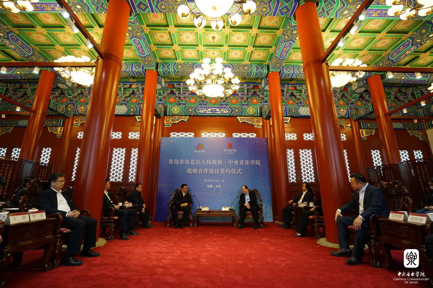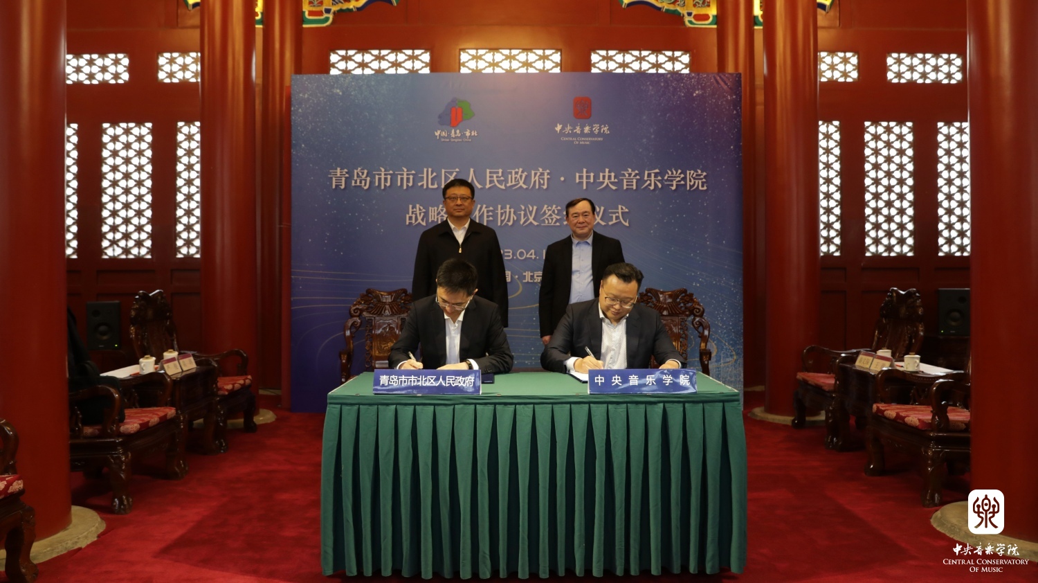 签约仪式在KY开元集团官网醇亲王府南大殿举行,中国文联副主席、KY开元集团官网校长俞峰,副校长秦文琛,院长办公室主任、党委宣传部副部长王歆,现代远程音乐教育学院院长方恒健,提琴制作研究中心主任高彤彤;青岛市市北区委书记高健,青岛国际邮轮港区服务管理局副局长、历史城区管委会主任袁涛,区政府副区长严俊,区教体局局长罗东,区财政局局长王静,区文旅局局长张玮,环海湾集团董事长迟永杰出席活动。