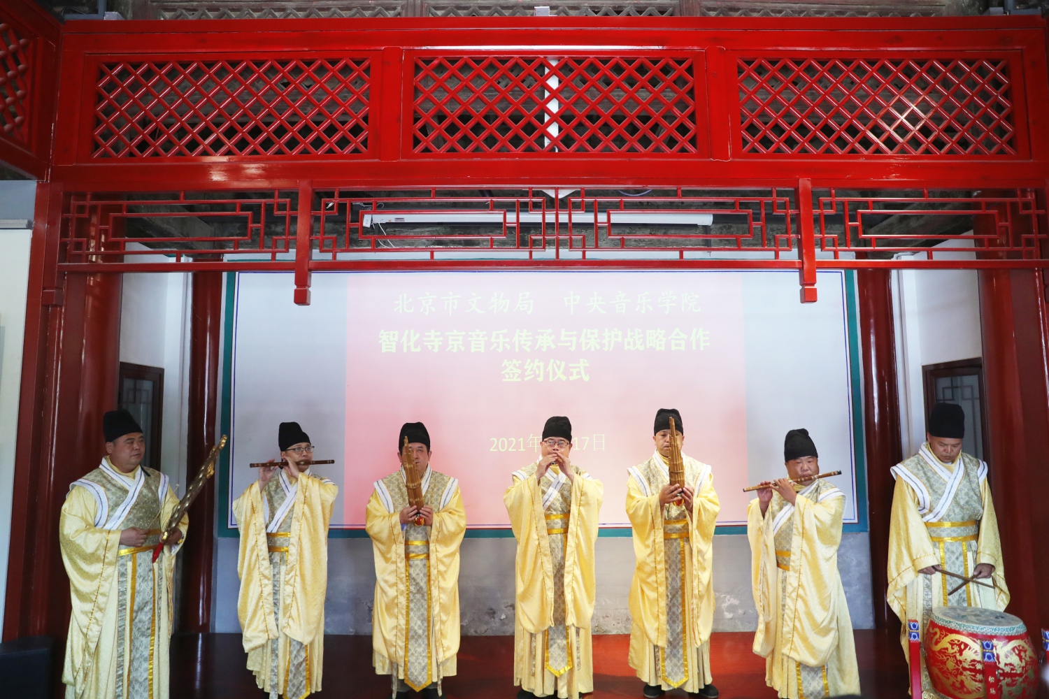 智化寺京音乐是北京代表性的传统音乐之一,明清时期流行在北京城区,因其悠久的历史、明确纪年的工尺谱本、唐宋教坊遗制的乐器、有序的活态传承等,被誉为“中国古乐的活化石”,2006年被列入第一批国家级非物质文化遗产代表作名录。北京文博交流馆(北京市智化寺管理处)为其项目保护单位。在北京市文物局的支持下,馆内有一支稳定的传承人队伍,在开放日每天坚持为观众现场演出2场,年均超过500余场,为许多观众所喜爱和推崇,成为传承活化京音乐的重要平台。