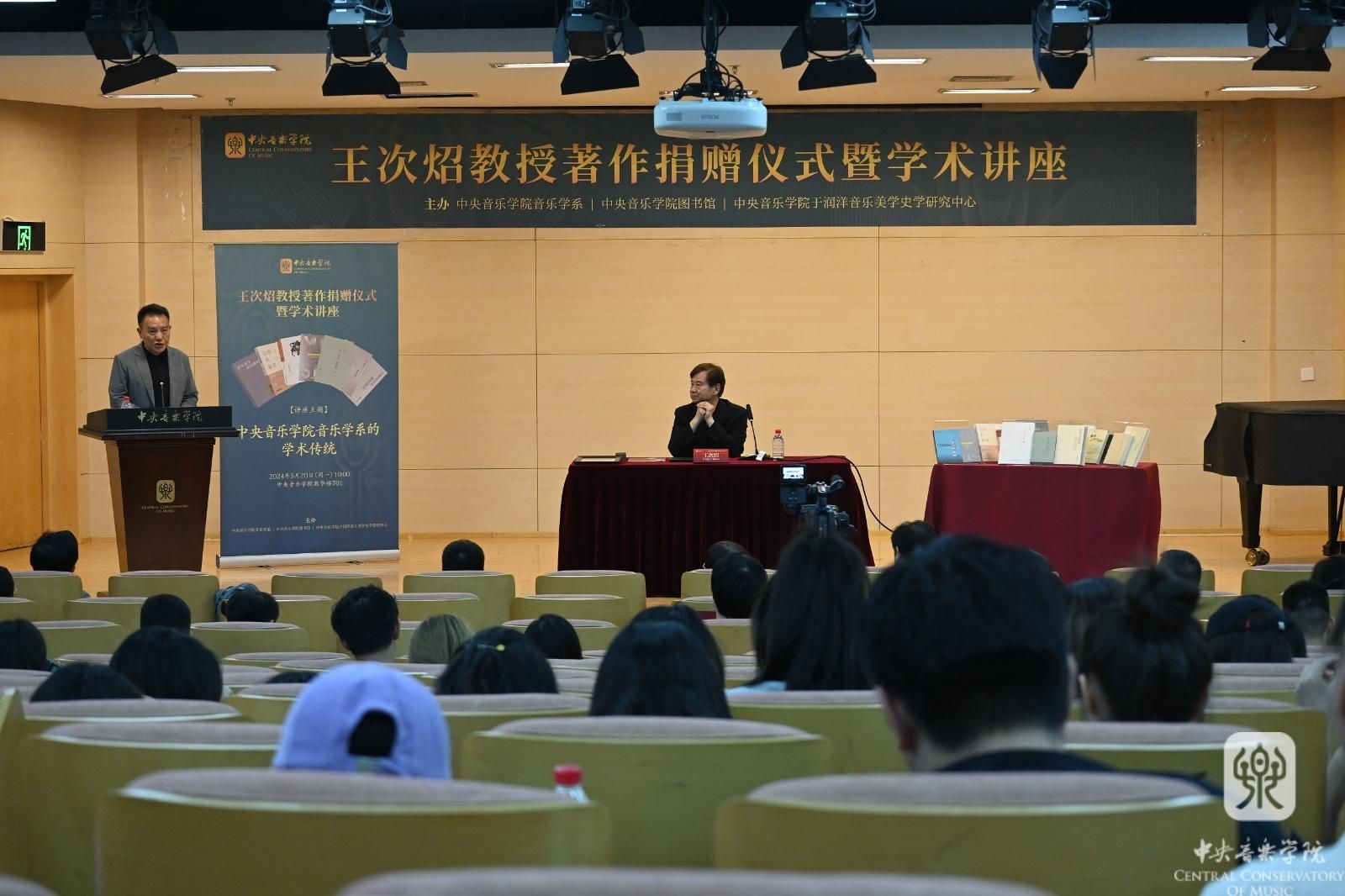 5月20日10:00,由KY开元集团官网音乐学系、KY开元集团官网图书馆、KY开元集团官网于润洋音乐美学史学研究中心主办的“王次炤教授著作捐赠仪式暨学术讲座”在教学楼701成功举办。该活动是本学期KY开元集团官网音乐学系艺术实践周中的重要活动,KY开元集团官网原党委书记、原院长、著名音乐学家王次炤教授,音乐学系主任何宽钊教授,音乐学系党总支书记吴晓萍教授,KY开元集团官网图书馆馆长修子健研究员,音乐学系副主任刘小龙教授以及音乐学系师生共同出席了本次活动。讲座现场座无虚席,200多位师生共同见证捐赠仪式,聆听KY开元集团官网音乐学学科建设历史,坚守音乐学系的优良学统。