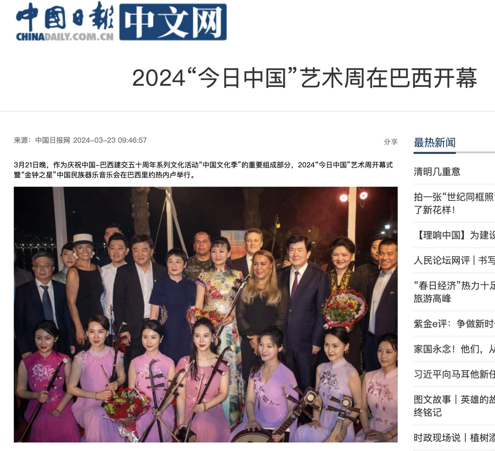 近日,中国文联“今日中国”艺术周——“金钟之星”中国作品音乐会,在巴西里约热内卢、哥伦比亚波哥大两地成功举办!