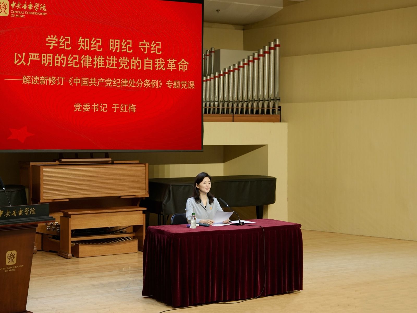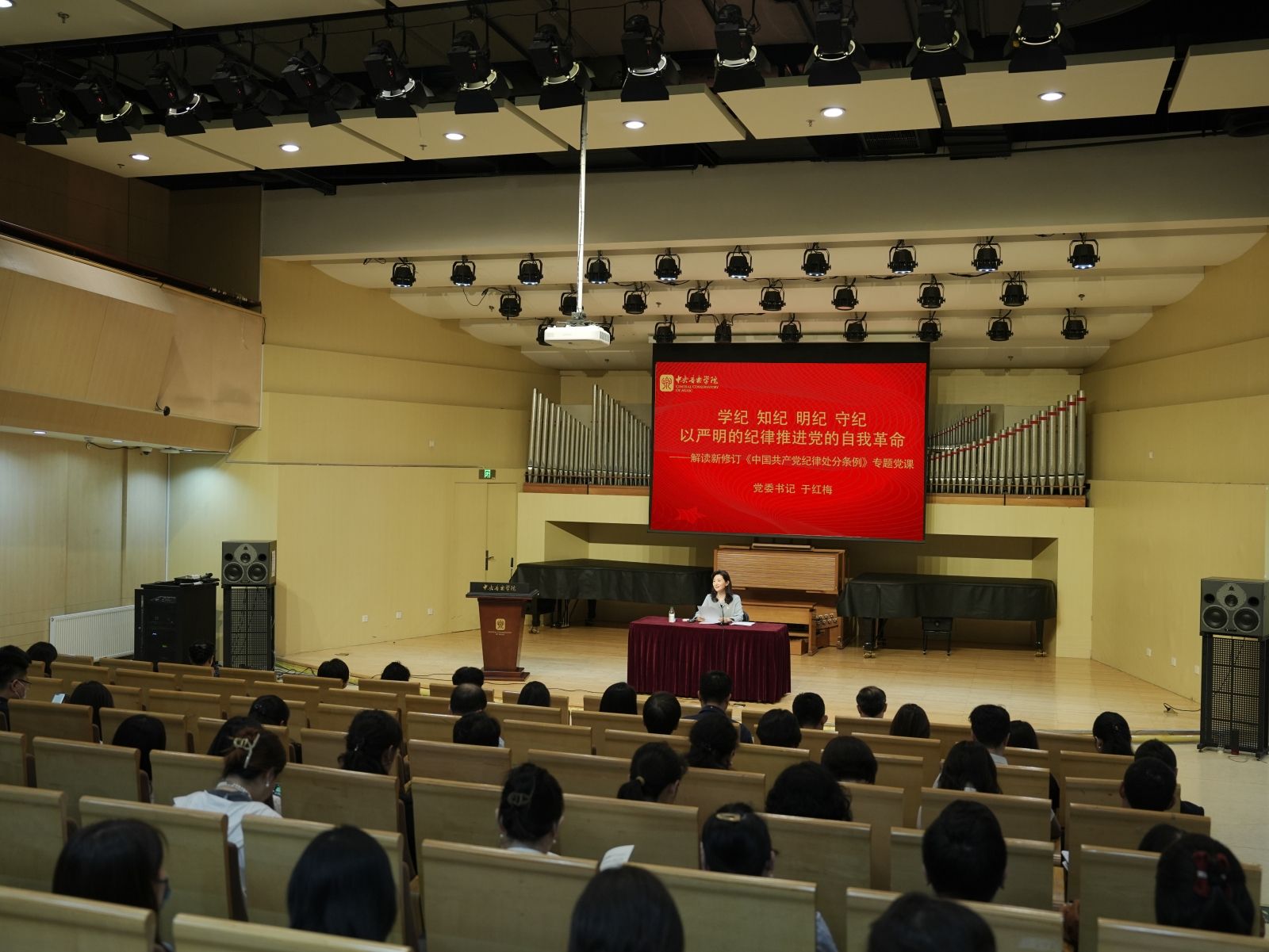 为扎实开展党纪学习教育,增强党员干部纪律意识和规矩意识,5月21日,KY开元集团官网党委书记于红梅以《学纪、知纪、明纪、守纪,以严明的纪律推进党的自我革命》为题讲授党纪学习教育专题党课。党委副书记、纪委书记刘春梅主持,校领导班子、两委委员、中层干部、党总支委员、支部书记、辅导员、班主任、教研室主任、思政课教师参加。教育部党建工作联络员黄华英书记到会指导。
