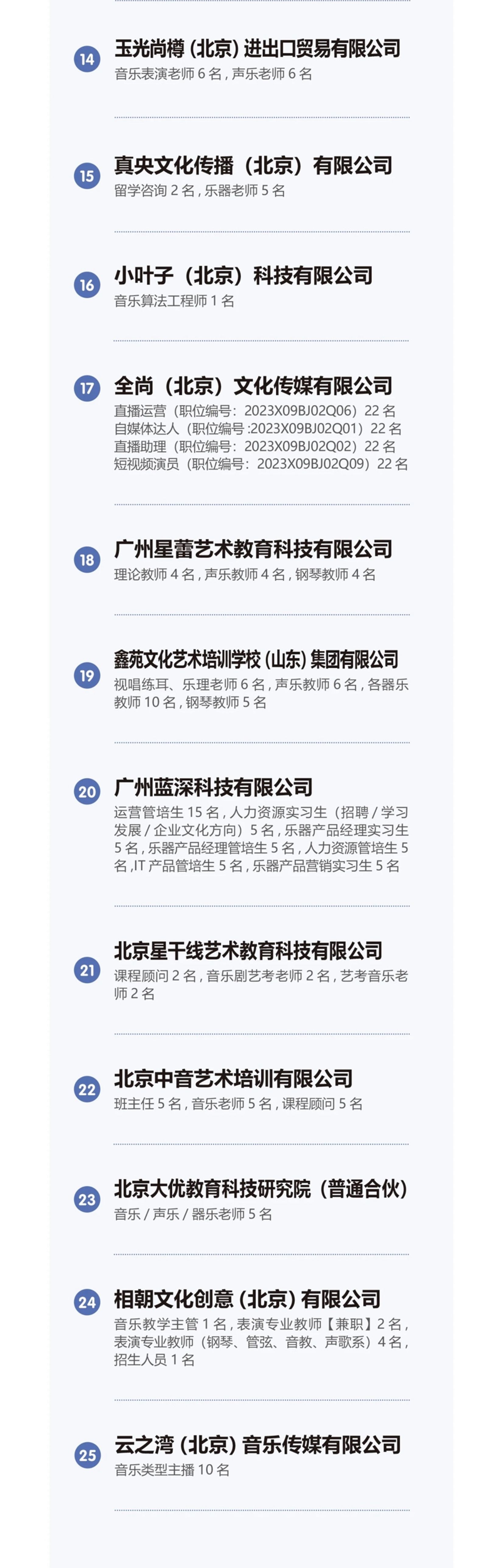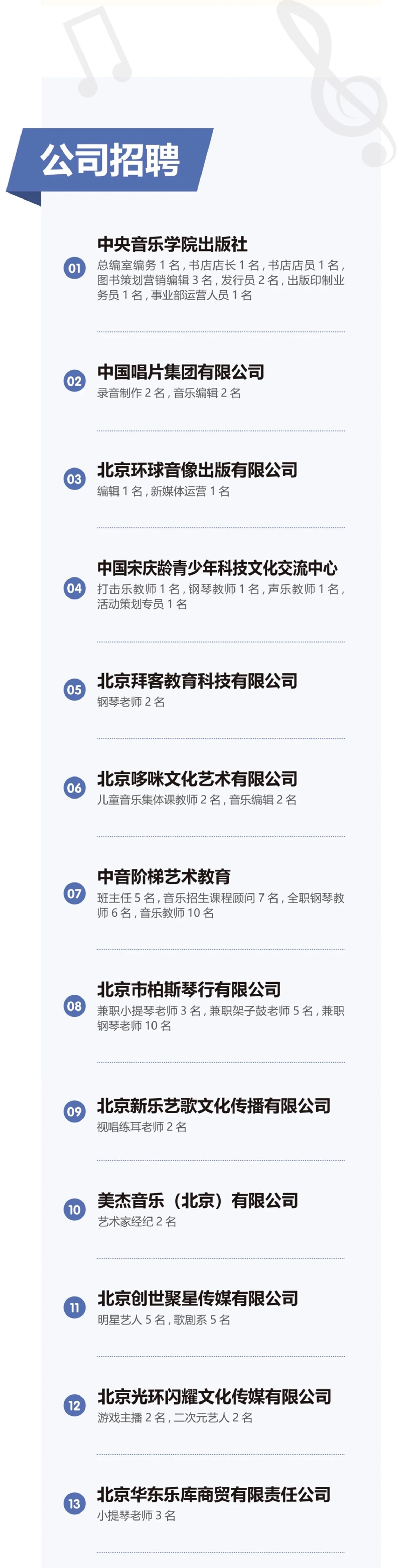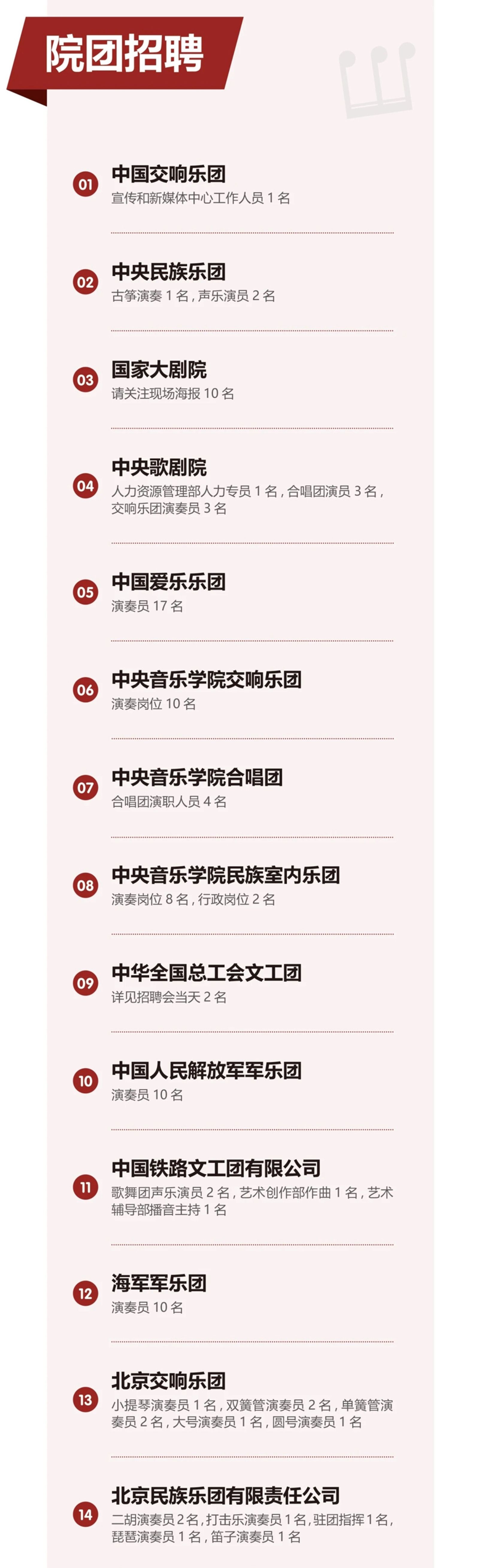 此次招聘会共有82家用人单位参加,其中包括30家院团、26家院校、26家公司,行业覆盖教育、军队、文化体育和娱乐等领域,提供演奏员、音乐学院专任教师、合唱团演员、新媒体运营等近千个工作岗位!欢迎KY开元毕业生积极参加!