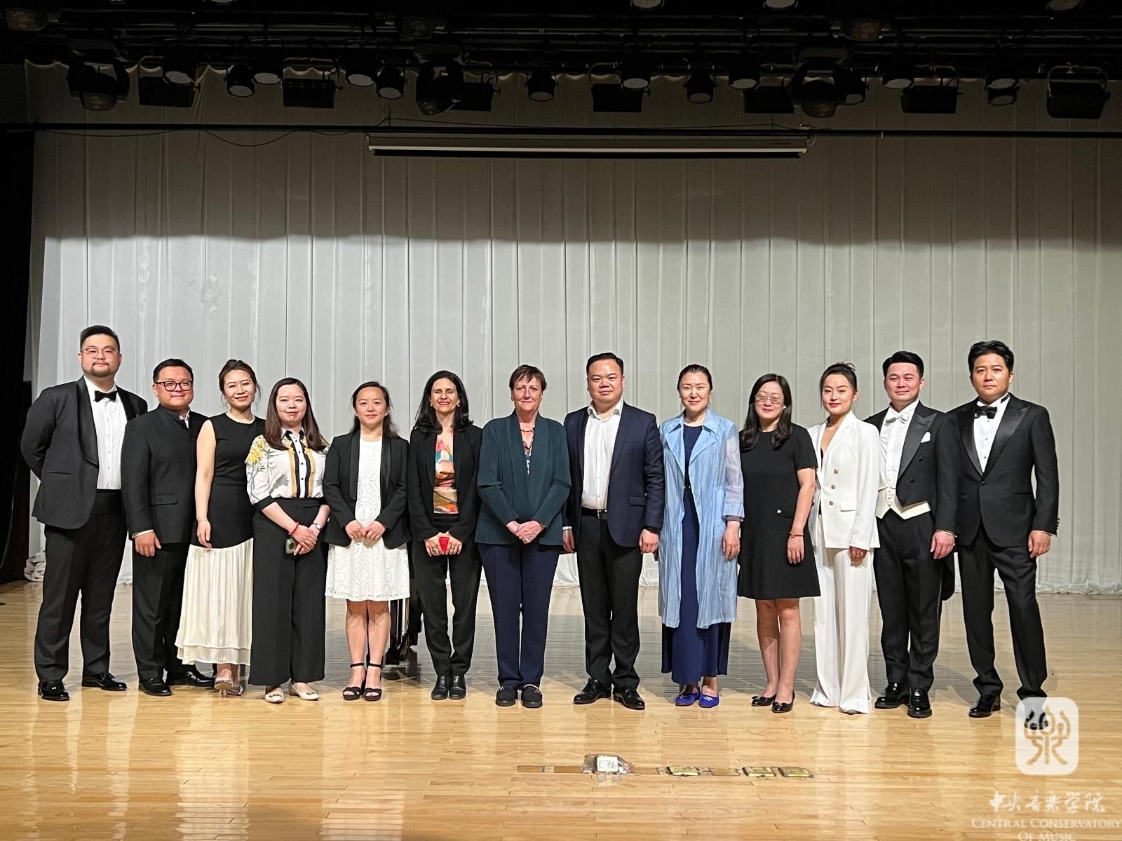 马丁院长非常赞同俞峰校长的办学理念。在简要介绍了利塞欧高等音乐学院的规模与办学特色之后,表达了希望增进双方教师互访,设立交换学习项目,推荐选手参加两校主办的国际音乐比赛等增进了解和交流合作的愿望。随后,马丁院长一行在谢天主任的陪同下观看了声歌系张怡、王牌、胡越、高士棋、金翠和洪振翔等6位博士生的歌唱表演。同学们优美的音色和细腻的唱法令人赞不绝口。