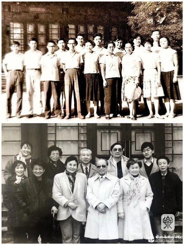下图:20世纪80年代指挥系教师。前排左起:郭宜昉、杨鸿年、郑小瑛、黄飞立、汤其娴、徐新。二排左起:程燕、吴灵芬、陈贻鑫、李华德、李清