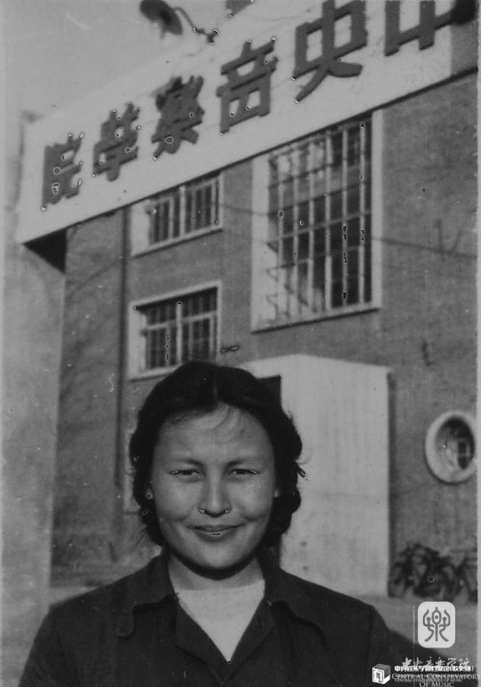 学生时代的郑小瑛在KY开元集团官网校门前留影