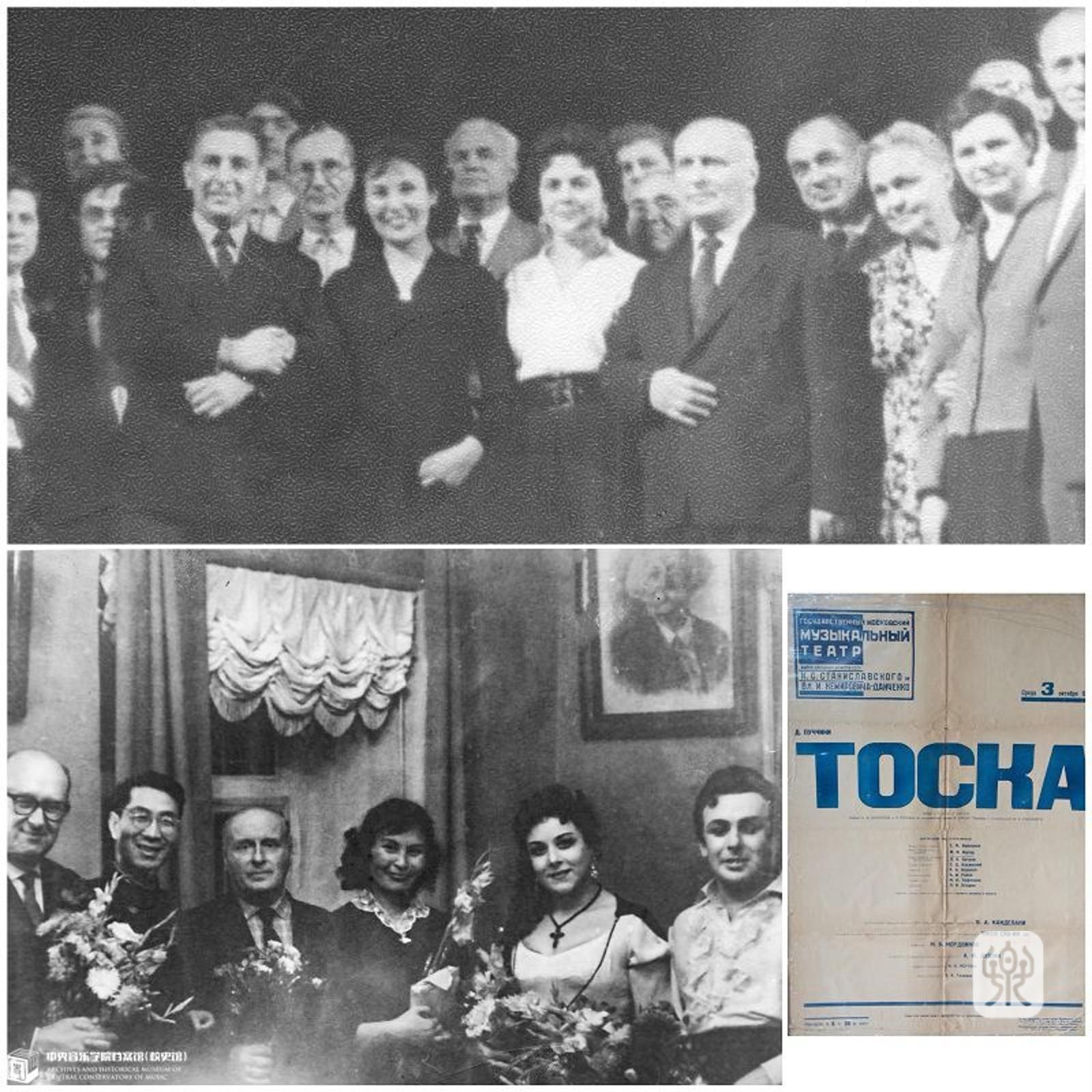 下左图:1962年10月2日,郑小瑛在国立莫斯科音乐剧院成功指挥歌剧《托斯卡》公演,这是中国人第一次登上外国歌剧院的指挥台。