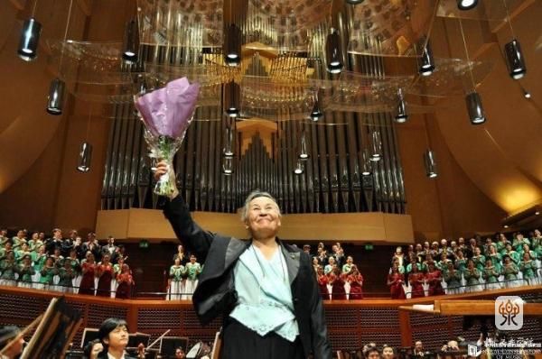 2009年10月9日,郑小瑛在旧金山戴维斯交响音乐厅指挥《土楼回响》后谢幕