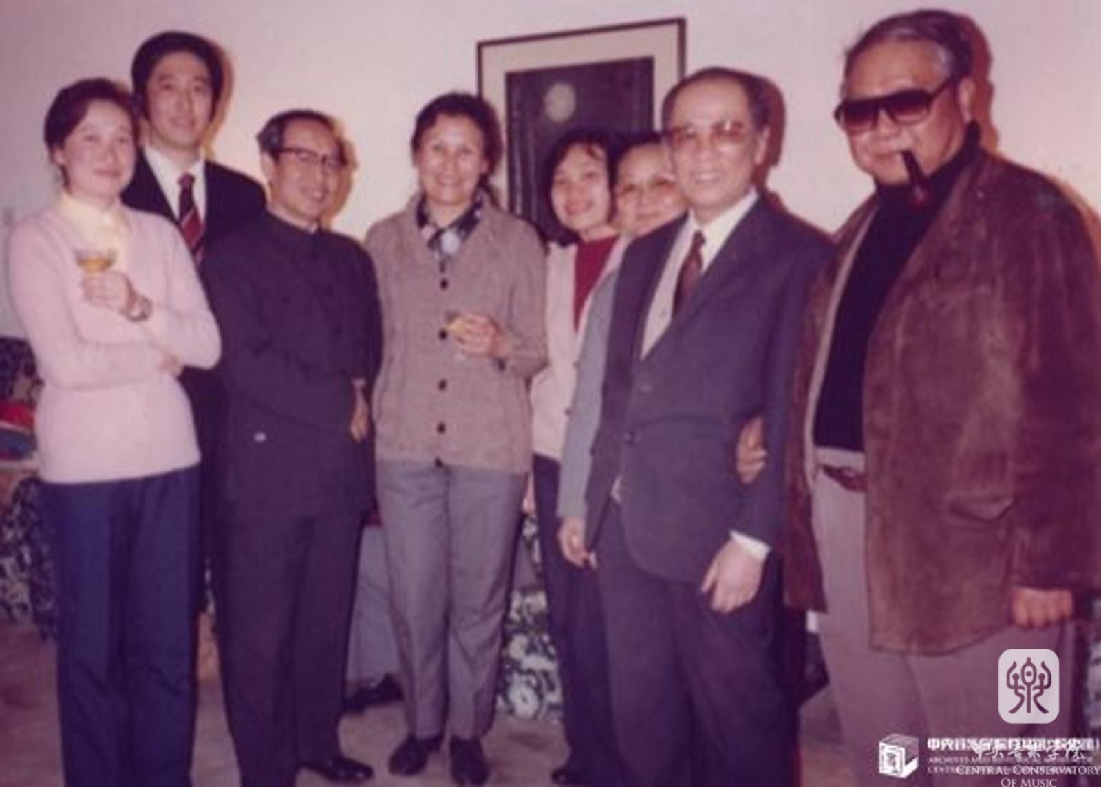 20世纪80年代,郑小瑛(左4)与赵沨院长(右1)和指挥家黄飞立(右2)、严良堃(左3)等人合影