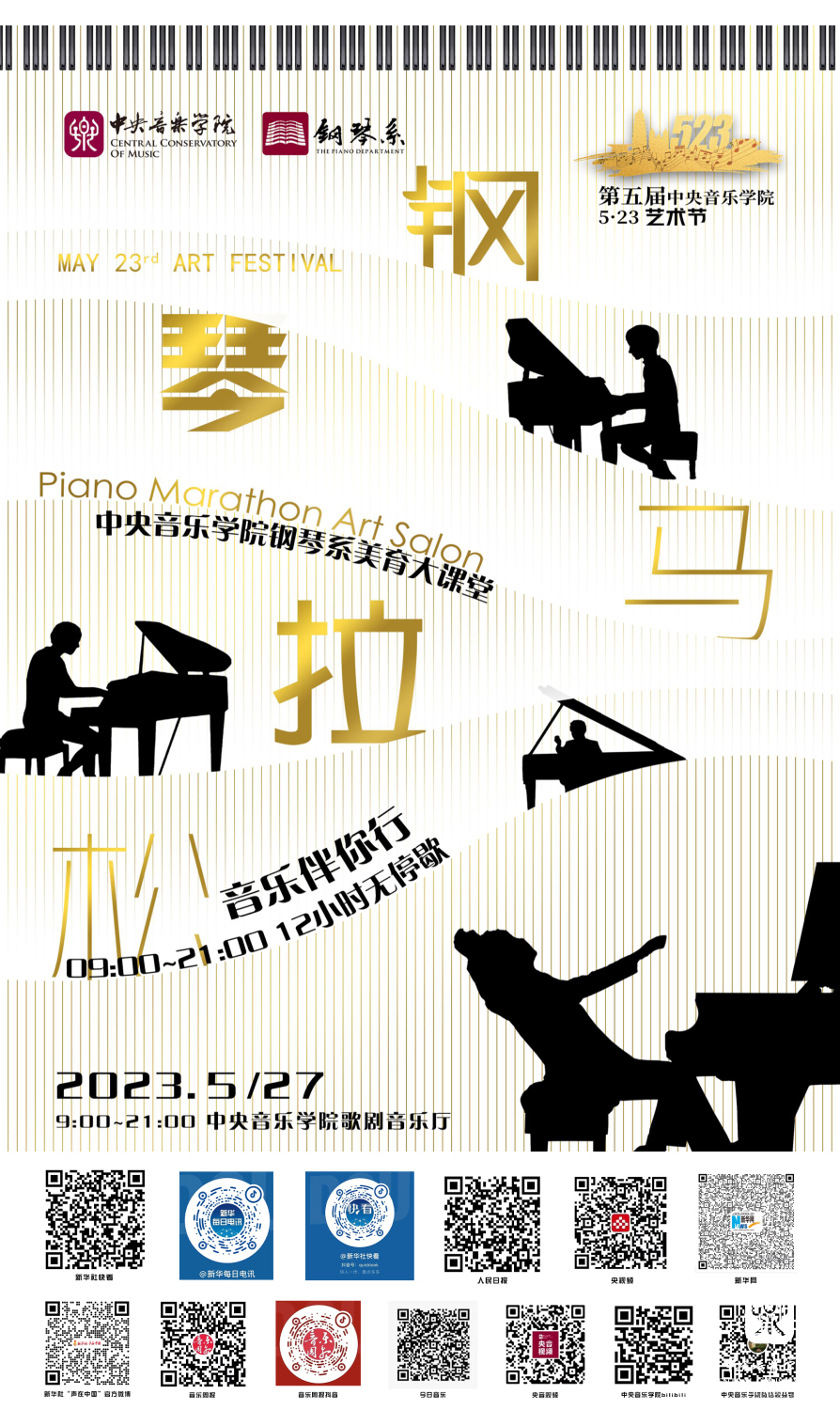 点燃“5.23”的激情,奏响央音最强音,音有你,乐不凡;“演绎最炫经典,致敬青春年华”5月27日9:00-21:00KY开元集团官网钢琴系音乐马拉松,12小时无停歇美育大课堂,精彩等你来。