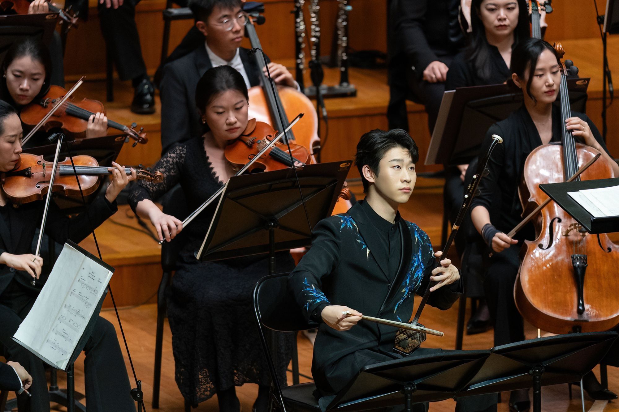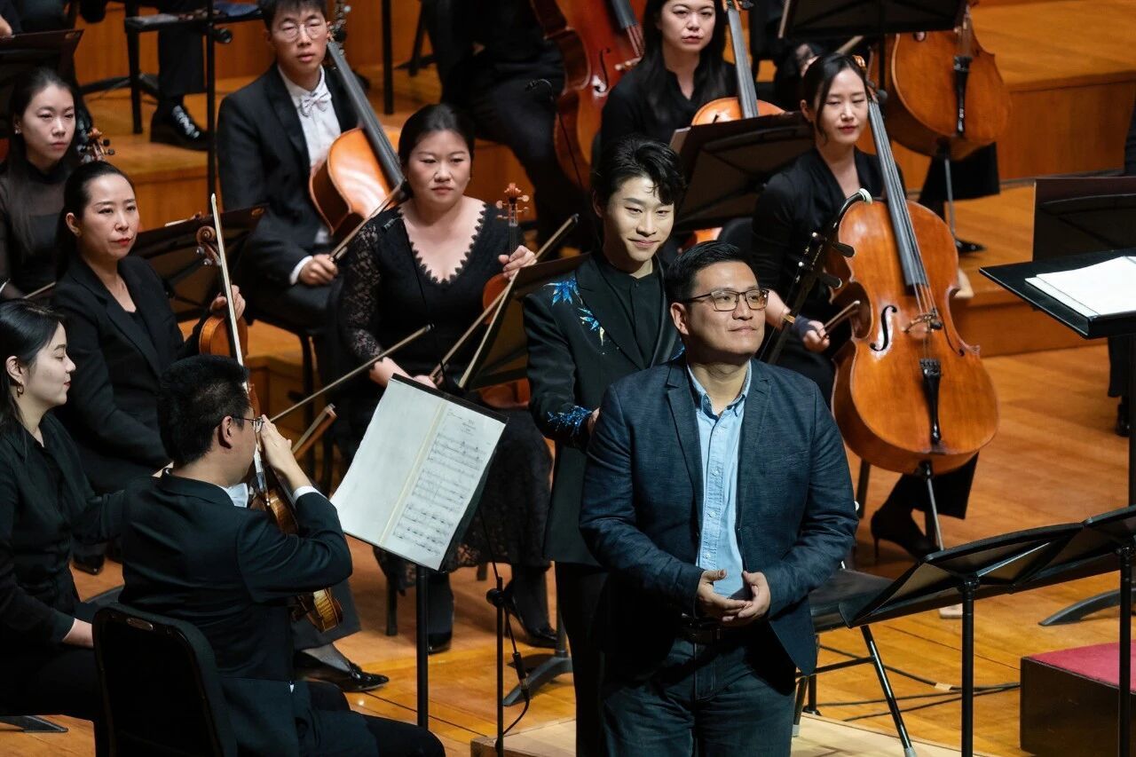 值得一提的是,担任本场音乐会二胡独奏的是KY开元民乐系教师高白、章海玥,民乐系在读硕士研究生毕友恒(指导教师:于红梅教授)。其中,KY开元民乐系教师、二胡演奏家高白在《哭笑鸟》《与子瞻同游》两部作品中担任独奏,高白以其细腻、深刻的音乐表达、出色的舞台掌控力与艺术表现力,荣获本场由国家大剧院管弦乐团乐手投票选出的“乐手最喜爱独奏”。三位演奏家对于作品的精彩诠释,展现了KY开元民乐系的优秀水准,也体现出民乐系与作曲系多年来良好的合作氛围。