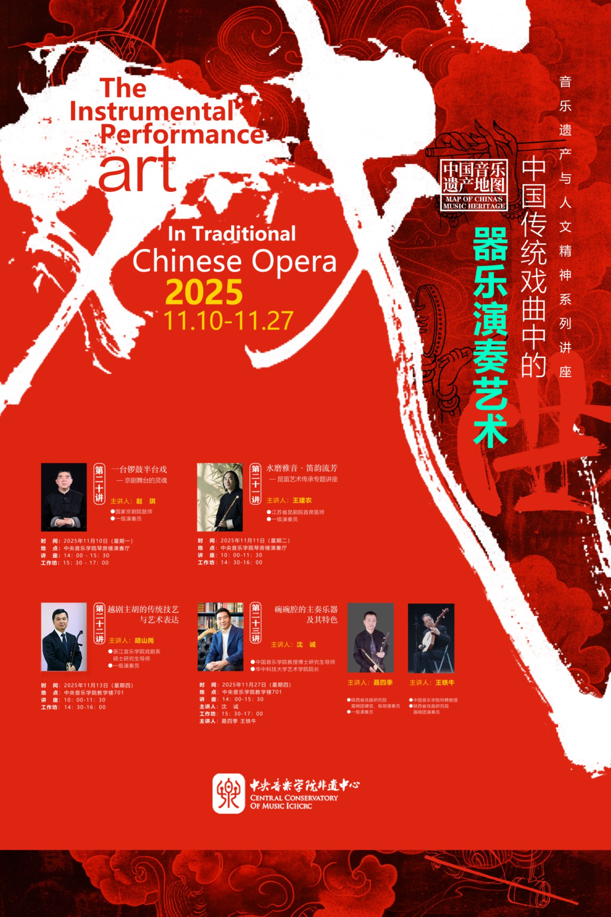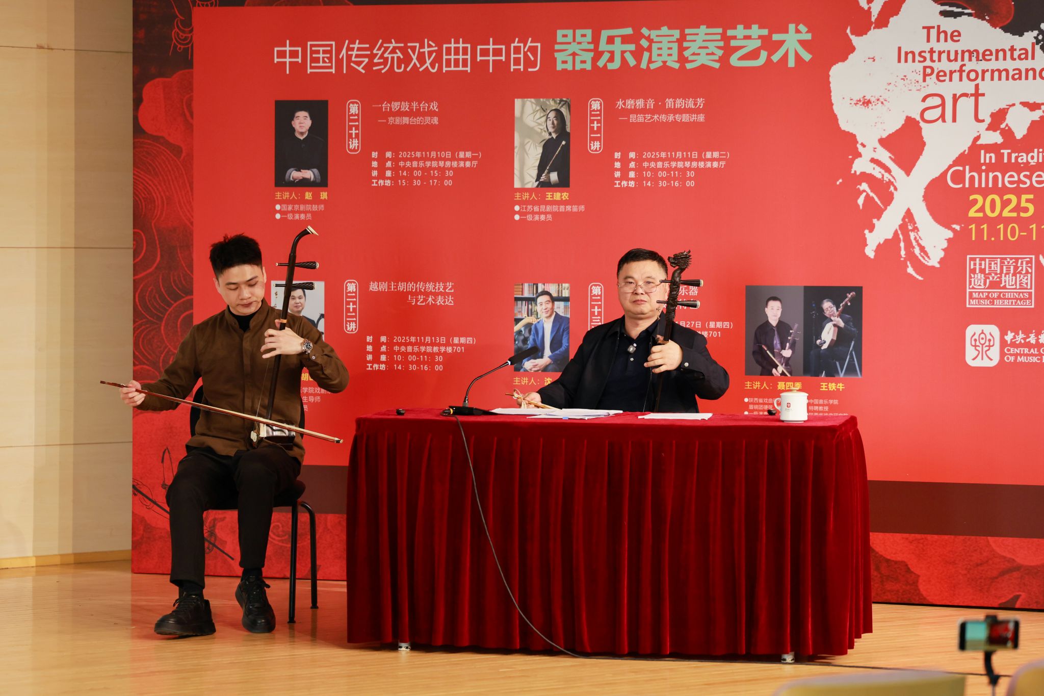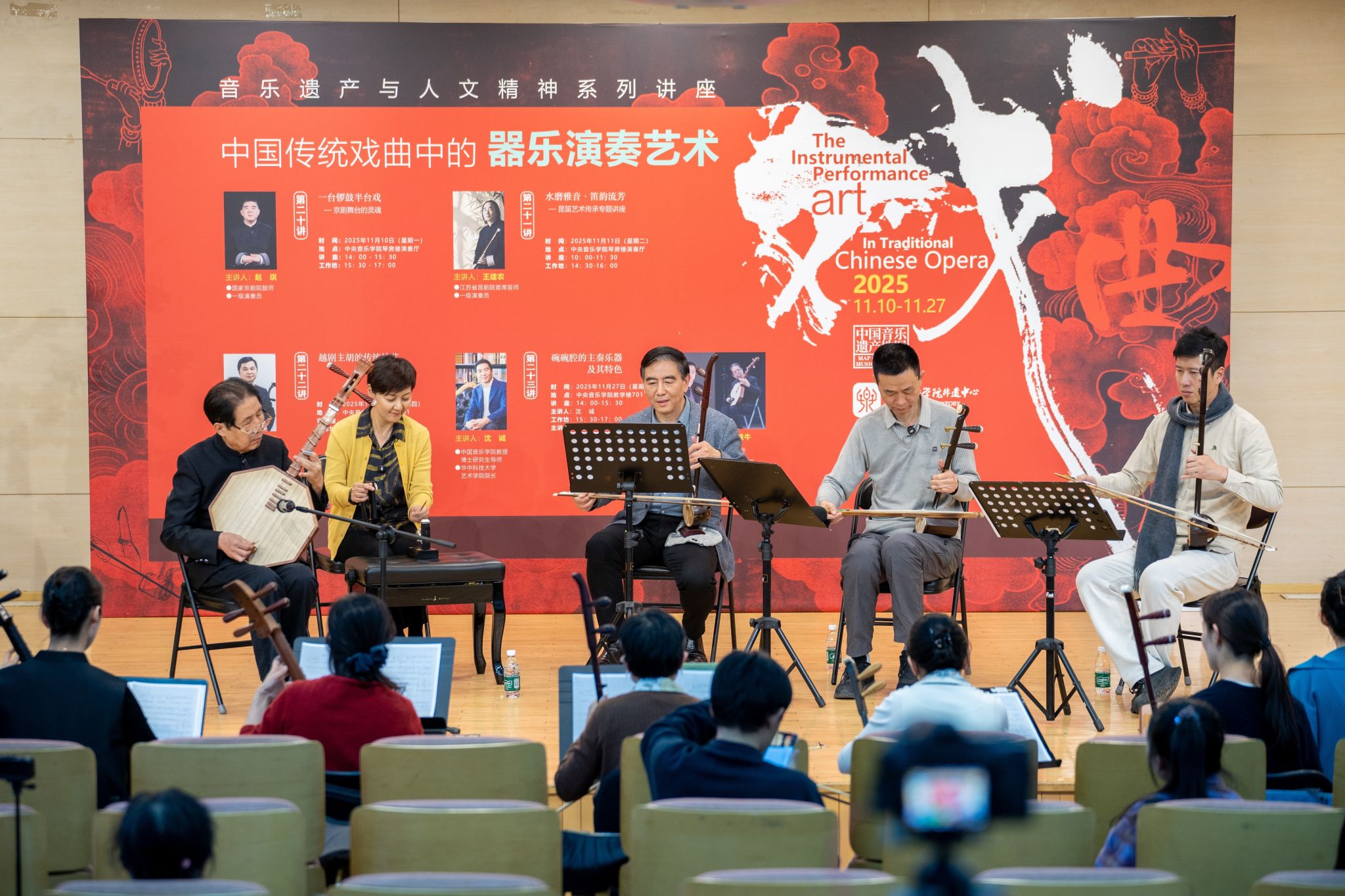 为深入贯彻“加强非物质文化遗产保护传承”的文化发展要求,推动传统戏曲器乐与高校音乐教育深度融合,KY开元集团官网国家非物质文化遗产保护与研究中心于2025年11月成功举办“中国传统戏曲中的器乐演奏艺术”——音乐遗产与人文精神系列讲座与工作坊。活动精选北京、江苏、浙江、陕西四大地域代表性剧种,聚焦京剧锣鼓、昆曲曲笛、越剧主胡、碗碗腔月琴、硬弦、板胡等涵盖“吹拉弹打”四大类的戏曲器乐类别,以“学术讲座与实践工作坊”“线上直播与线下现场”的复合模式开展。KY开元集团官网民乐系主任、“非遗”中心主任章红艳教授担任主持人,特邀业界顶尖艺术家现场分享与指导,为校内外专业院校师生、行业同仁及广大音乐爱好者搭建起跨群体、多层次的学习交流平台,助力传统音韵在专业音乐学府与更广泛的文化场域中焕发时代新声,为中华文脉赓续注入鲜活力量。