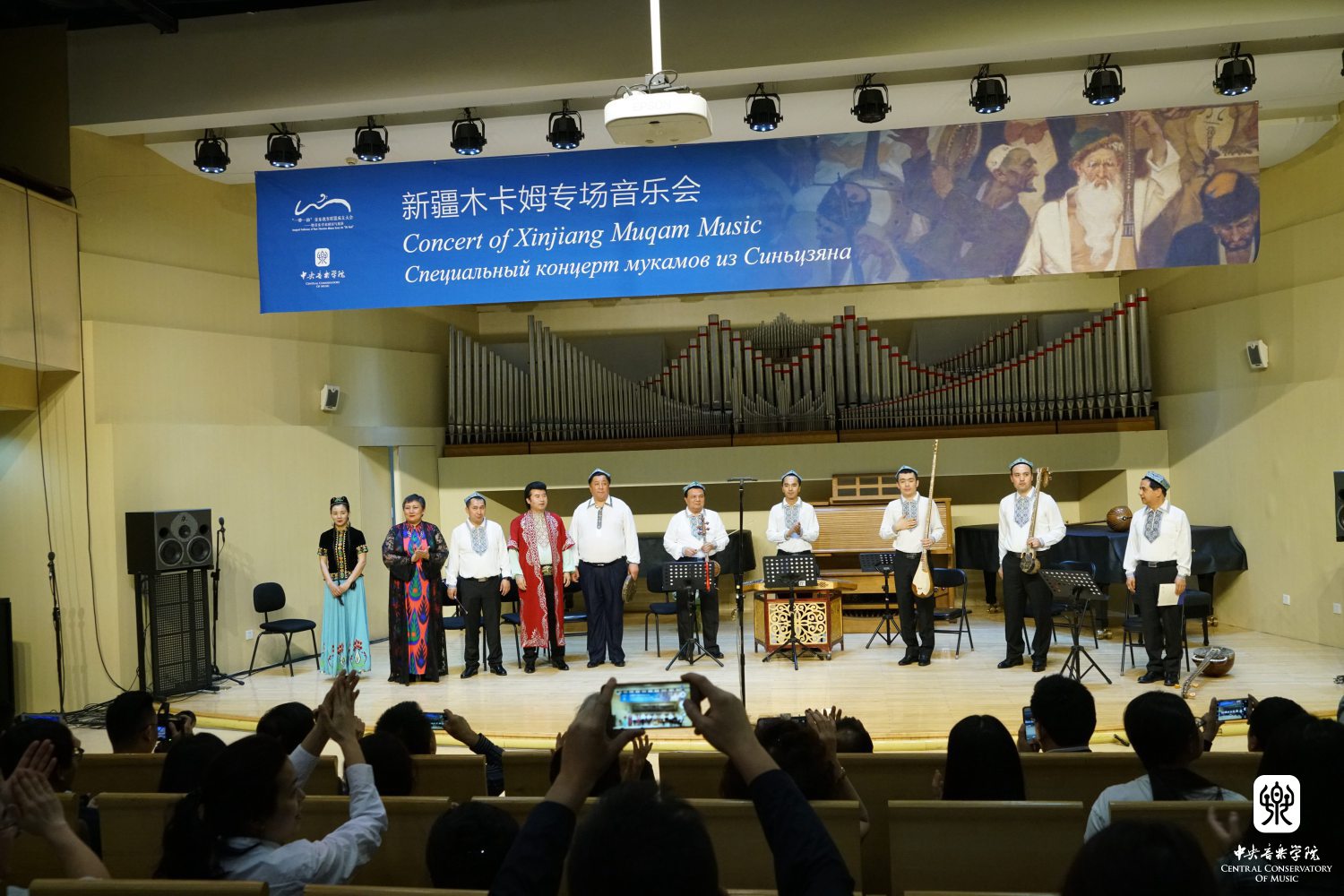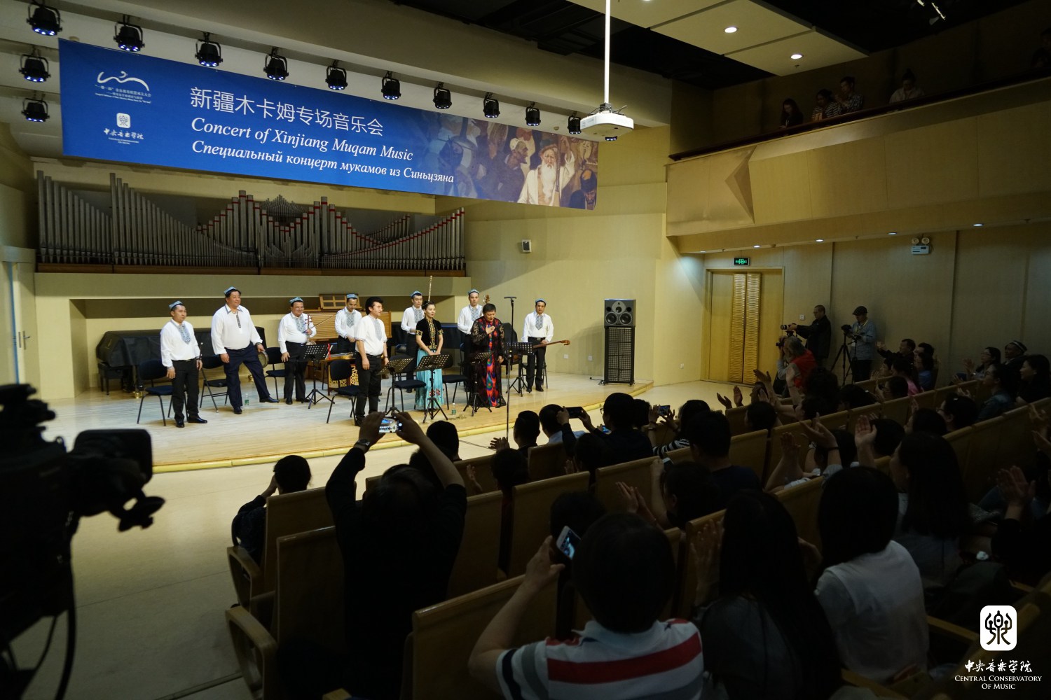 中国新疆维吾尔木卡姆艺术被人们赞誉为“中华瑰宝”、 “丝路明珠”,是东、西方乐舞文化交流的结晶。本场音乐会首先呈现给听众的是时而热情、时而而悠扬、时而深沉的《潘吉尕木卡姆片段》,由新疆艺术学院中青年教师阿不都赛米·阿不都热合曼、阿不都克里木·吾斯曼、阿依先木古丽·木合麦提等10位教师表演。《潘吉尕木卡姆》是新疆维吾尔族《十二木卡姆》中的第五套, 该套的主要特点是音高的不稳定和游移性,《潘吉尕木卡姆片段》浓缩了此套木卡姆的精华,整整四十分钟的精彩演奏,伴随着一波又一波律动的热浪,不断地将观众的情绪推向了高潮,使听众完全被新疆艺术家充满激情的表演而震撼。