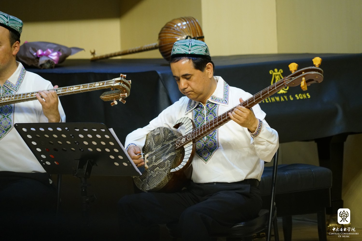 木卡姆片段结束后,新疆艺术学院的教师又为大家倾情呈现了四首作品《艾介姆》(弹拨尔、都塔尔二重奏)、伊犁民歌《乌尔古莱》、艾捷克独奏《你的天上有没有月亮》、喀什民歌《为众人奉献》。一曲曲优美的旋律,一段段热烈的演奏,再一次给听众带来了音乐上的极致体验。每当乐曲结束,现场都会爆发长时间、热烈的掌声。