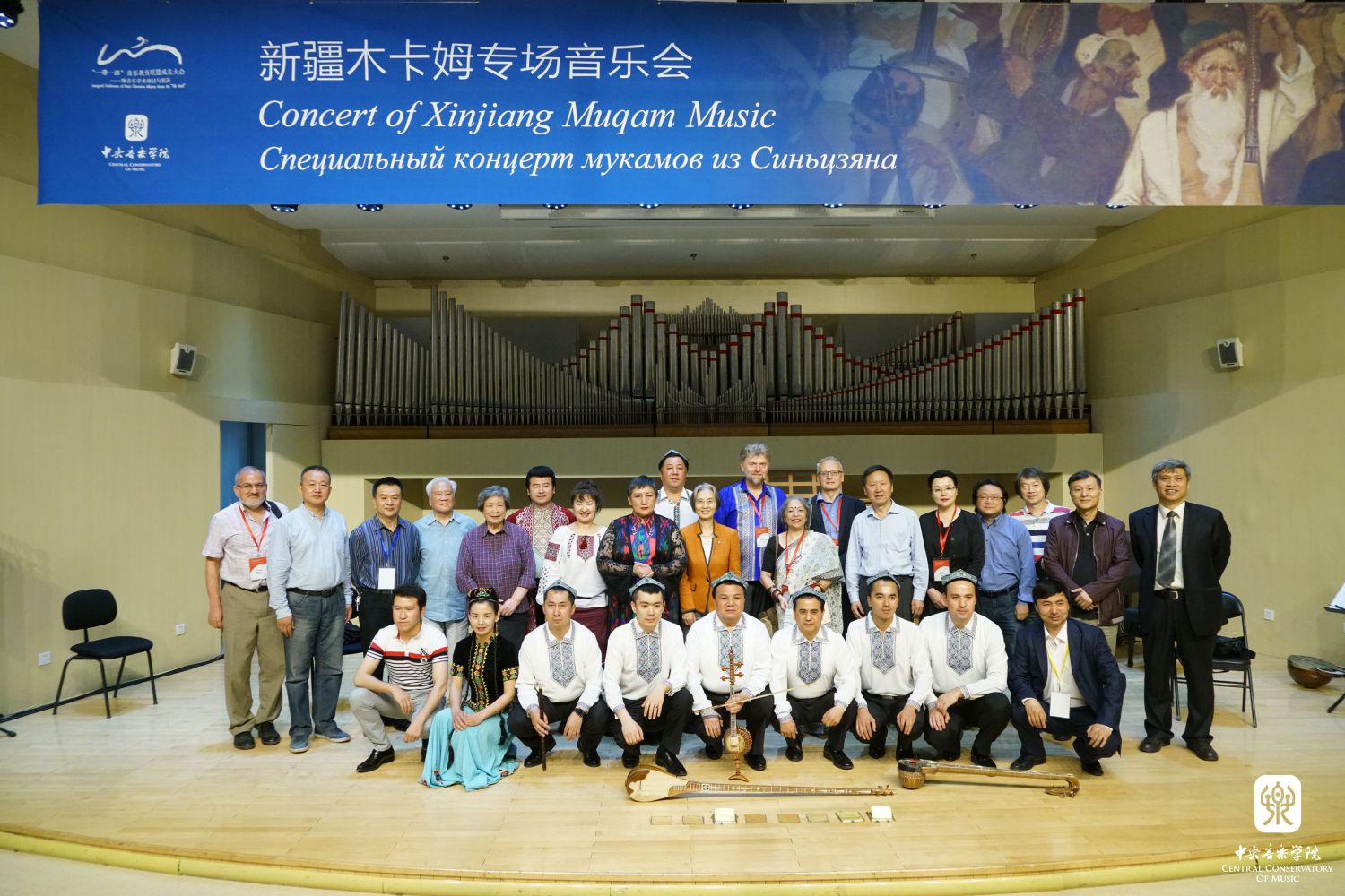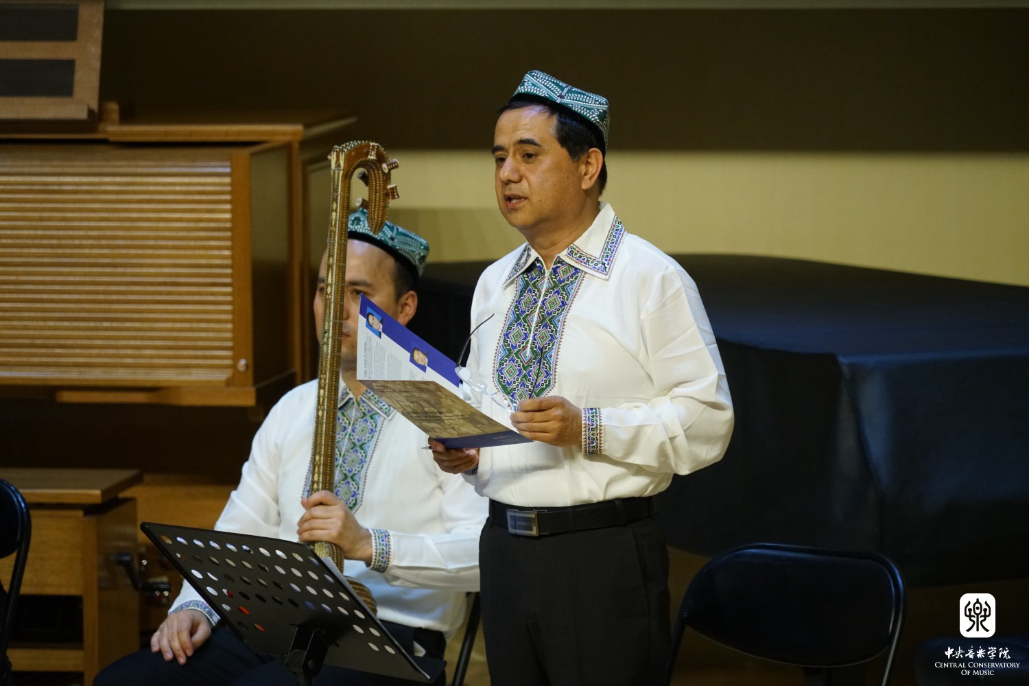 2017年5月6日下午16点30分,KY开元集团官网201演奏厅座无虚席, “一带一路音乐教育联盟成立大会——暨音乐学院研讨与展演”活动的第一场专题音乐会 ——“新疆木卡姆专场音乐会”在这里举行。新疆艺术学院中青年教师组成的木卡姆演出团奉献了精彩的演出,给在座观众带来了一场非比寻常的听觉盛宴。KY开元集团官网党委书记郭淑兰、KY开元集团官网副院长肖学俊、国际传统音乐学会总书记斯文尼博·帕顿、KY开元集团官网袁静芳教授、中国音乐学院赵塔里木教授,以及来自15个国家和我国11所音乐院校的院长和专家出席了此次音乐会。音乐会由新疆艺术学院艺术创作实践中心主任、木卡姆与麦西来甫研究方向学术带头人阿不都赛米·阿不都热合曼教授主持。