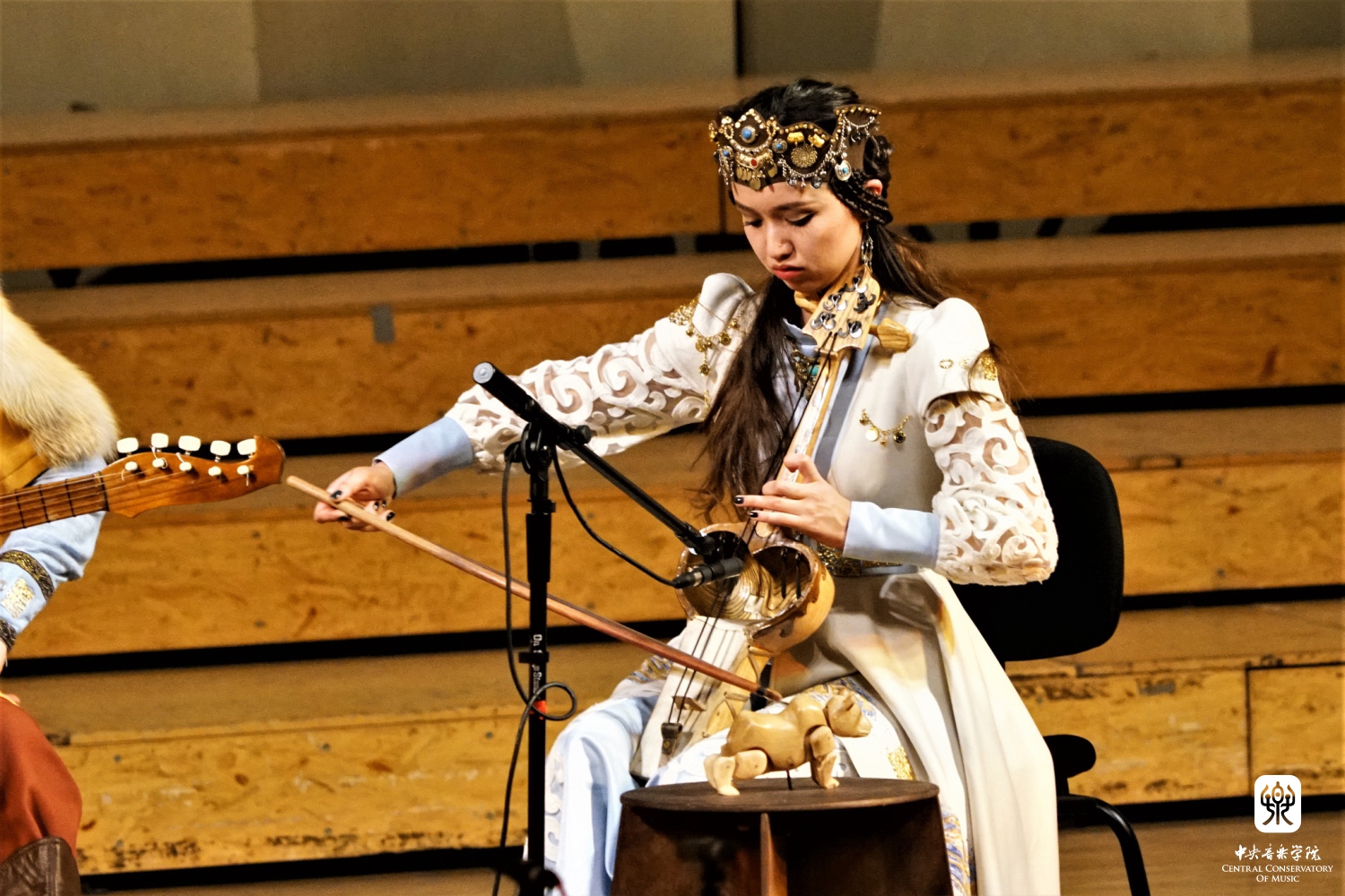 第一板块的哈萨克斯坦音乐由来自哈萨克斯坦国的“HasSak” 乐队演出。这是一支融合了哈萨克传统音乐与古代突厥骑士赞歌现代民族乐队。身着盛装的KY开元集团官网声歌系二年级中国哈萨克族学生努尔依拉担任讲解。“HasSak”乐队演唱了《献礼》(原创)、《天鹅》《遗言》(原创)、《高阿尔泰》《黑走马》5首作品。