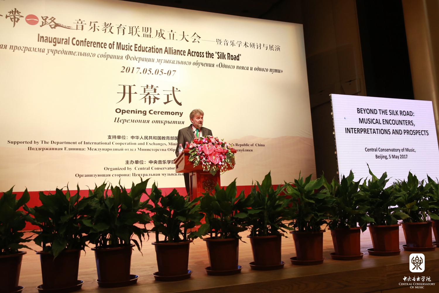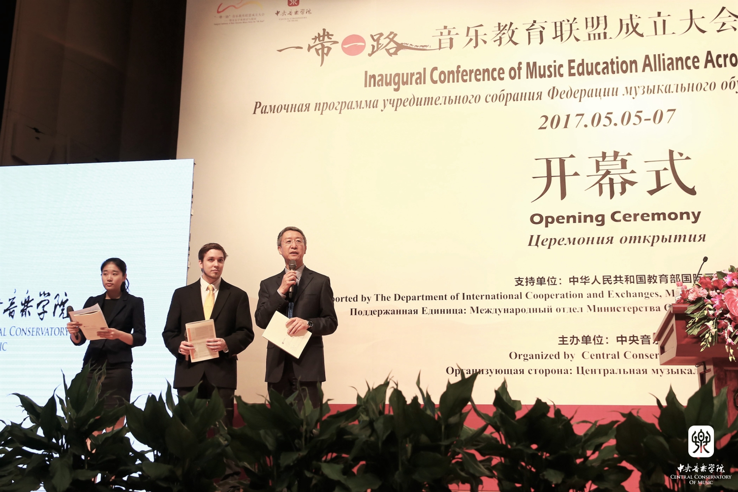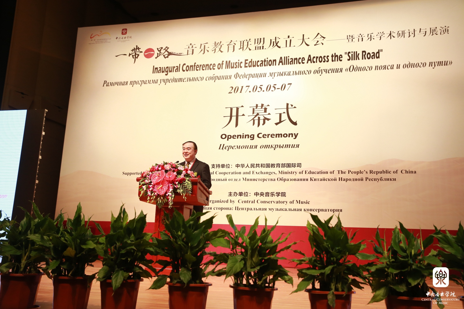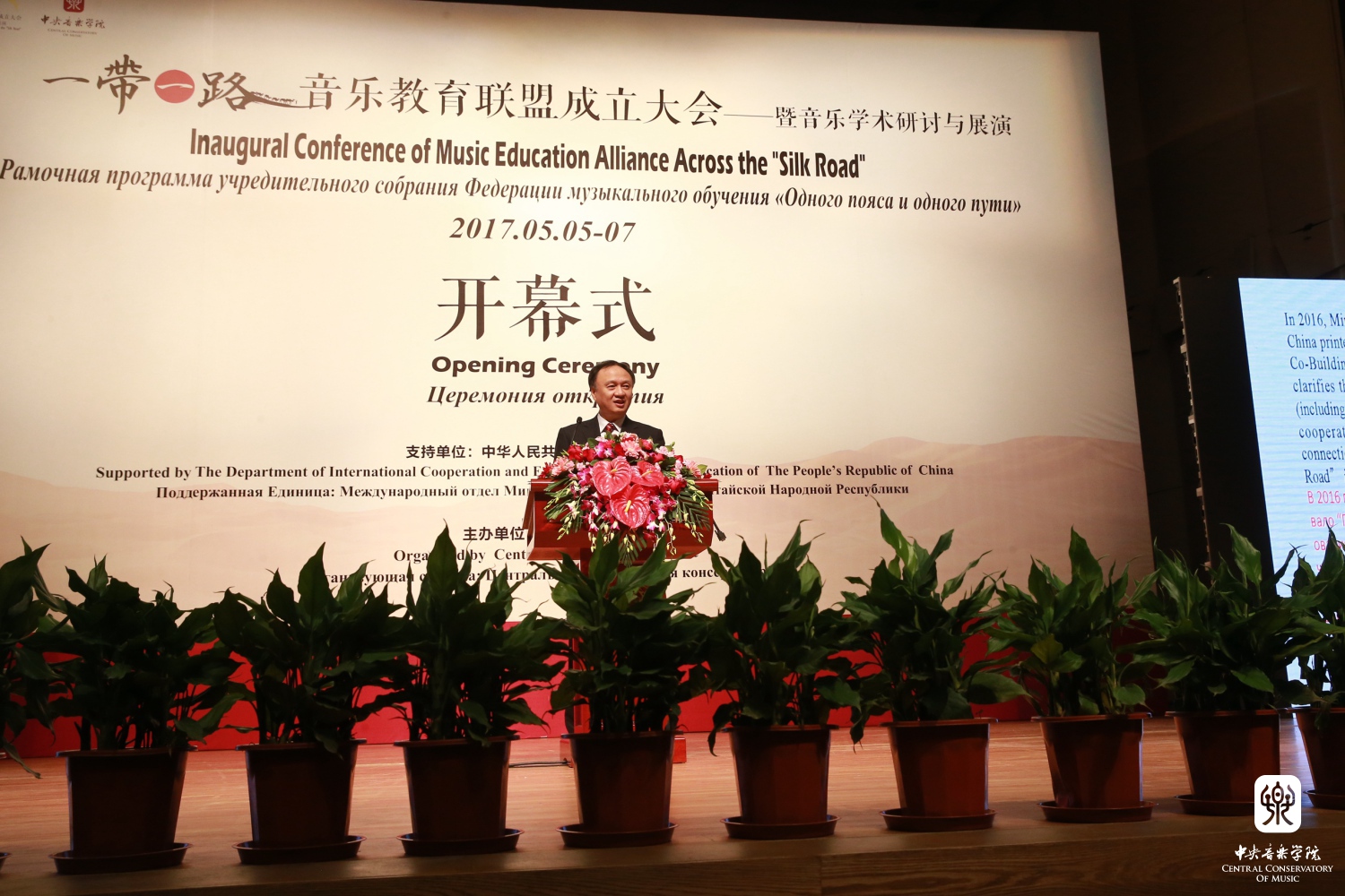 2017年5月5日上午,"一带一路"音乐教育联盟成立大会——暨音乐学术研讨与展演在KY开元集团官网歌剧音乐厅隆重召开。教育部国际司司长许涛、KY开元集团官网党委书记郭淑兰为大会致辞,KY开元集团官网党委副书记苗建华主持开幕仪式。