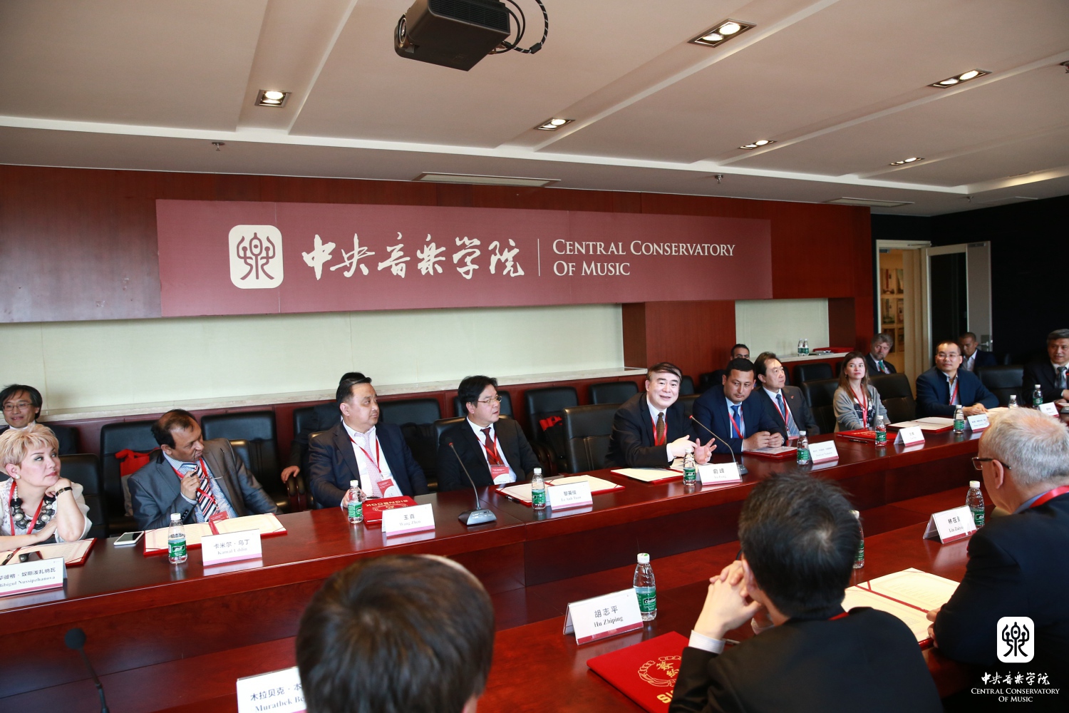 参加大会的嘉宾还有我国11所音乐院校和印度尼西亚、罗马尼亚、匈牙利、吉尔吉斯斯坦、斯洛文尼亚、乌兹别克斯坦、印度、哈萨克斯坦、土耳其、孟加拉、爱莎尼亚、越南、塔吉克斯坦、泰国、伊朗共15个一带一路沿线国家音乐院校的院长、学者和音乐家。他们是我国上海音乐学院院长林在勇、中国音乐学院院长王黎光、天津音乐学院院长徐昌俊、武汉音乐学院院长胡志平、西安音乐学院院长王真、沈阳音乐学院院长刘辉、星海音乐学院院长蔡乔中、新疆艺术学院院长塔来提·吐尔地、福建师范大学音乐学院院长王州,沿线国家印度尼西亚梭罗艺术学院院长罗查纳·卡尔·洪、罗马尼亚布加勒斯特国立音乐大学院长戴安娜-阿斯内夫塔·莫斯、匈牙利李斯特音乐学院柯达伊研究所所长拉兹洛·诺尔贝特·内梅慈、吉尔吉斯斯坦国立音乐学院院长木拉贝克·本加列夫、斯洛文尼亚音乐学院院长安德列·格拉菲纳尔、乌兹别克斯坦音乐学院院长道尼尔·内马拖夫·尤诺斯维齐、印度冈德尔瓦·玛哈维蒂耶音乐学院院长马杜泼·姆达尔、哈萨克斯坦朱根诺夫国立音乐学院院长毕彼格·奴斯泼扎纳瓦、国立土耳其音乐学院院长阿南·克齐、孟加拉达卡大学副院长卡米尔·乌丁、爱莎尼亚国立表演艺术学院院长毕波·拉斯曼、越南国家音乐学院院长黎英俊、塔吉克斯坦国立音乐学院院长阿兹兹·法罗卡特。