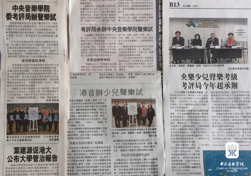 2017年2月27日,KY开元集团官网少年及儿童声乐考级新闻发布会在香港举行。KY开元集团官网院长、考级委员会主任俞峰,党委副书记、考级委员会常务副主任逄焕磊,考级委员会秘书长李小曼,KY开元集团官网声乐歌剧系教授、香港少年及儿童声乐考级教材主编孙东方及香港考评局国际及专业考试部总经理罗慧基女士共同出席了发布会并就在港考试的具体安排进行了详细介绍。