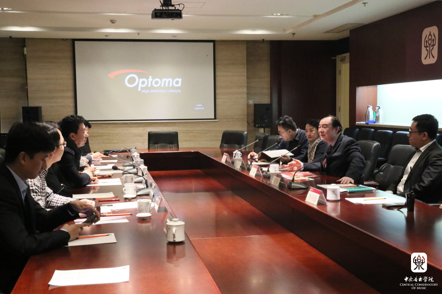 院长办公室主任赵海、“一带一路”音乐教育联盟秘书处秘书长张伯瑜、校资产经营公司董事长孔聪、演出实践管理中心主任李应泰、作曲系作曲教研室主任郝维亚参加了会见,会后姚立军主任一行参观了KY开元教学场地和设施。
