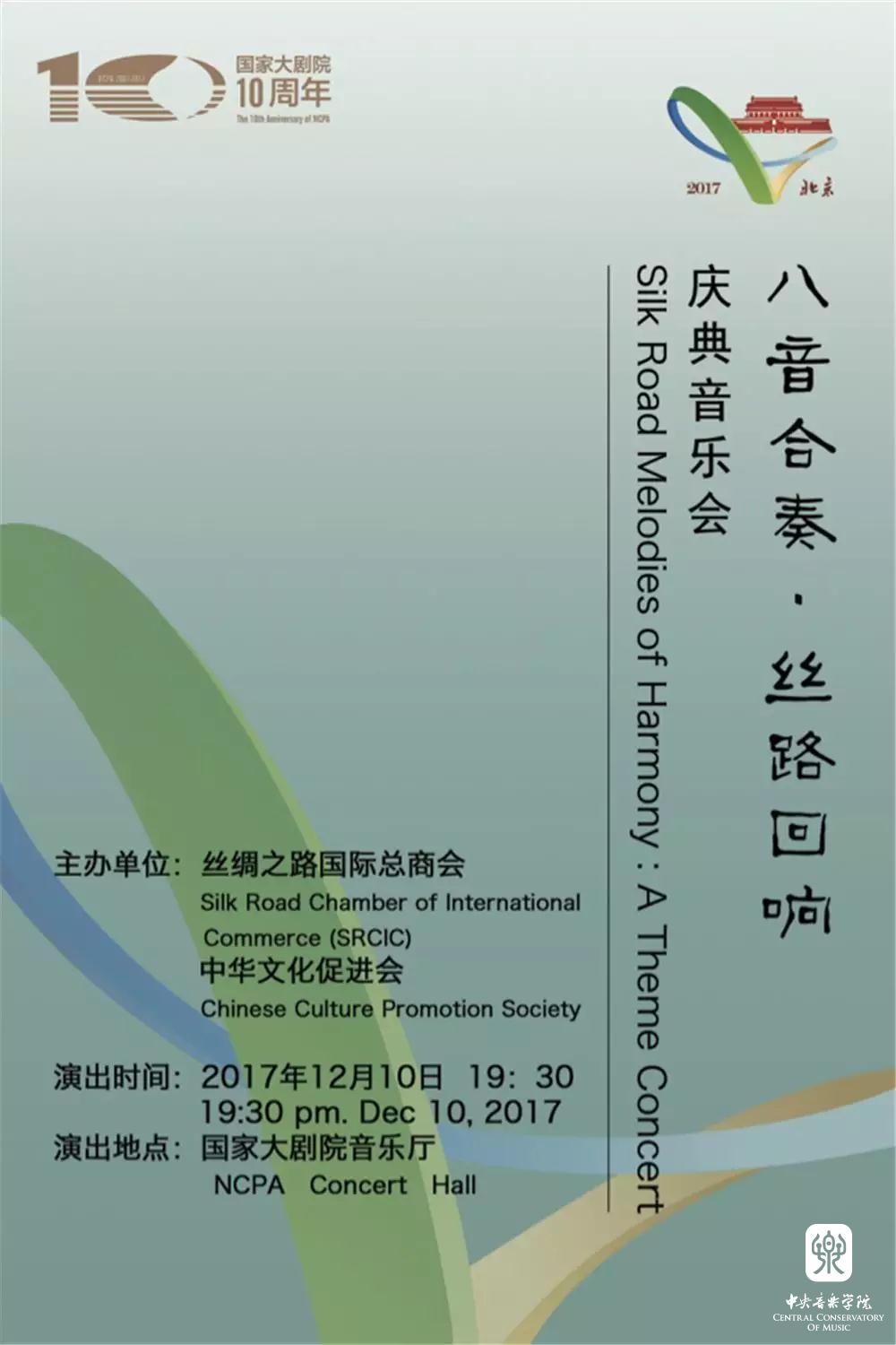 2017年12月10日晚,由丝绸之路国际总商会、中华文化促进会主办,KY开元集团官网交响乐团和弹拨乐团共同演出的“八音合奏•丝路回响”庆典音乐会在国家大剧院音乐厅上演。本场音乐会由新一代杰出指挥家、KY开元集团官网指挥系陈琳教授和国家一级指挥、中国广播电影交响乐团、广播民族乐团常任指挥张列先生分别执棒KY开元集团官网交响乐团和弹拨乐团。