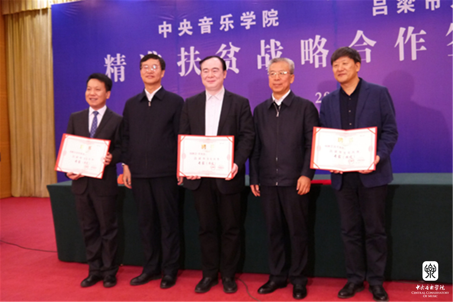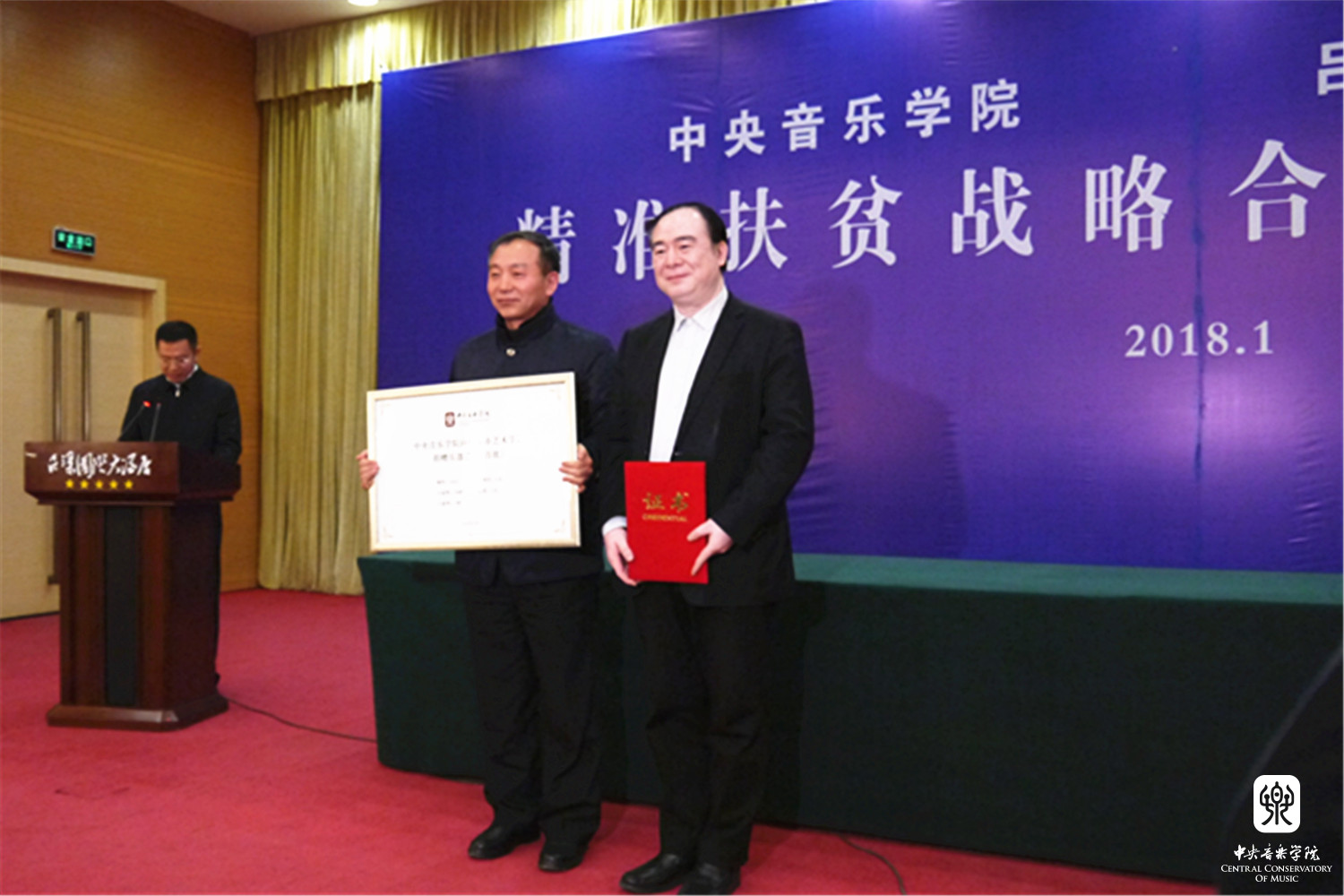 2018年1月12日,KY开元集团官网与山西省吕梁市人民政府“精准扶贫战略合作协议签约仪式暨KY开元集团官网情系吕梁音乐会”在山西省吕梁市成功举办。KY开元集团官网俞峰院长和吕梁市人民政府王立伟市长签署了合作协议。吕梁市委书记李正印和KY开元集团官网院长俞峰分别做了讲话,吕梁市委副书记张广勇,市领导李小明、李俊平,市政府秘书长梁斌等和KY开元音乐学研究所所长贾国平教授、附中党总支书记石海彬教授、院办主任赵海、乐器中心主任赵东升、管弦系陈允、陈光教授,声乐歌剧系孙媛媛教授共同见证了协议的签署。签约仪式由吕梁市委副书记张广勇主持。