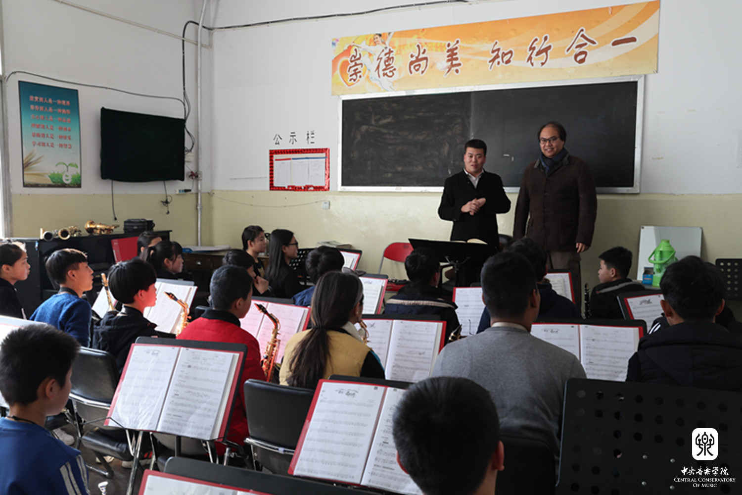 石海彬和陈光教授还带着乐器到吕梁市艺术学校为可爱的学生们上了两节生动的专业课。通过悉心指导,让学生们能切身感受到技术的进步对音乐表现力的直接影响。课后,学生们都激动万分、深感获益匪浅,他们表示从没想过能如此近距离接触这样优秀的一流教师,接受他们的精心指导。相信这将会在他们心中埋下一颗热爱音乐、追求美好的种子,大大激发他们奋发向上的学习追求及动力。