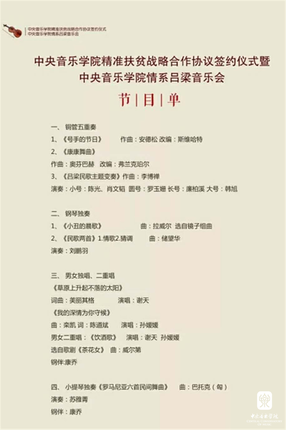 《号手的节日》《康康舞曲》《吕梁民歌主题变奏》