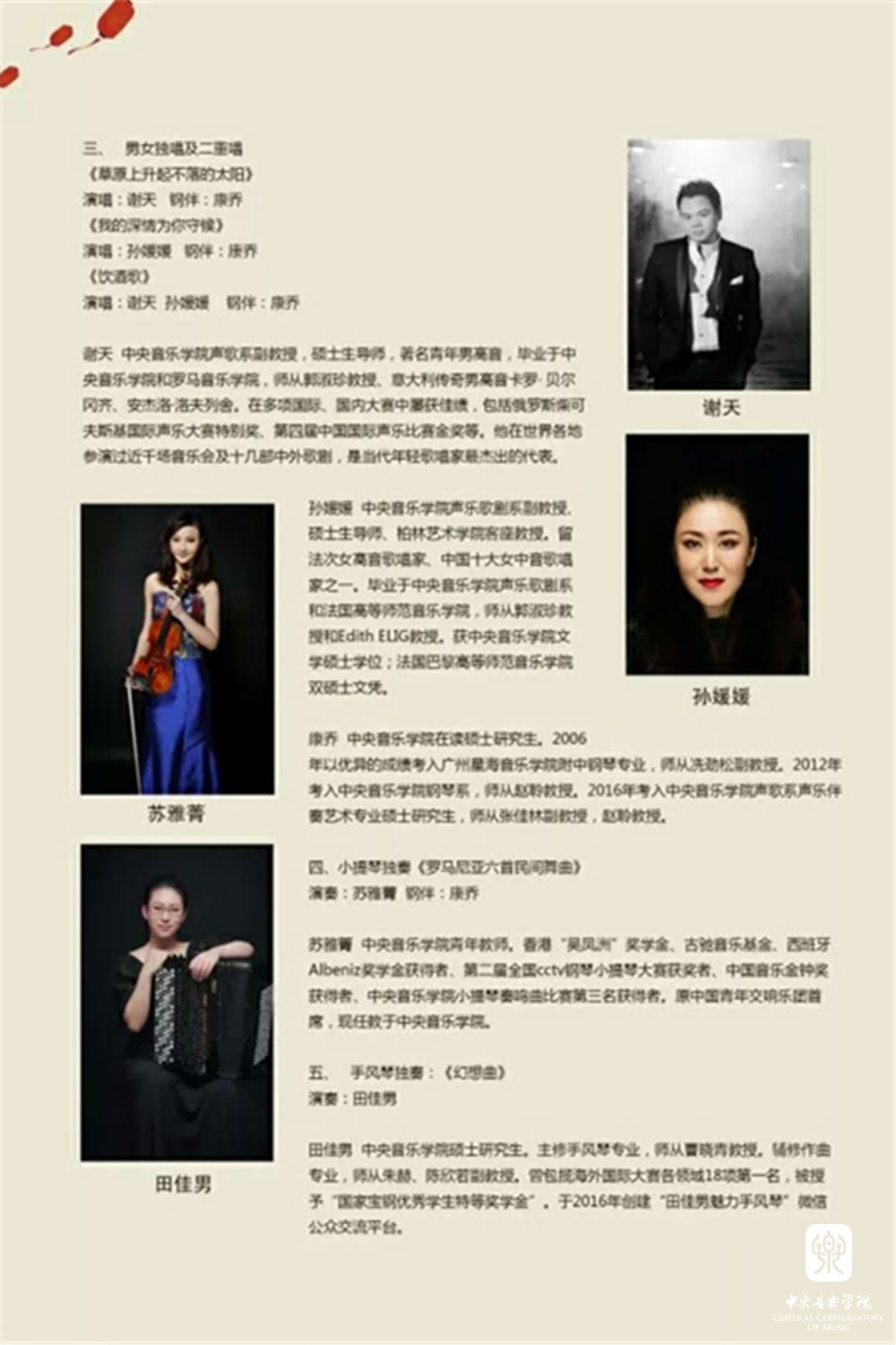 笙:郑杨 唢呐:吴冬晓 打击乐:刘畅