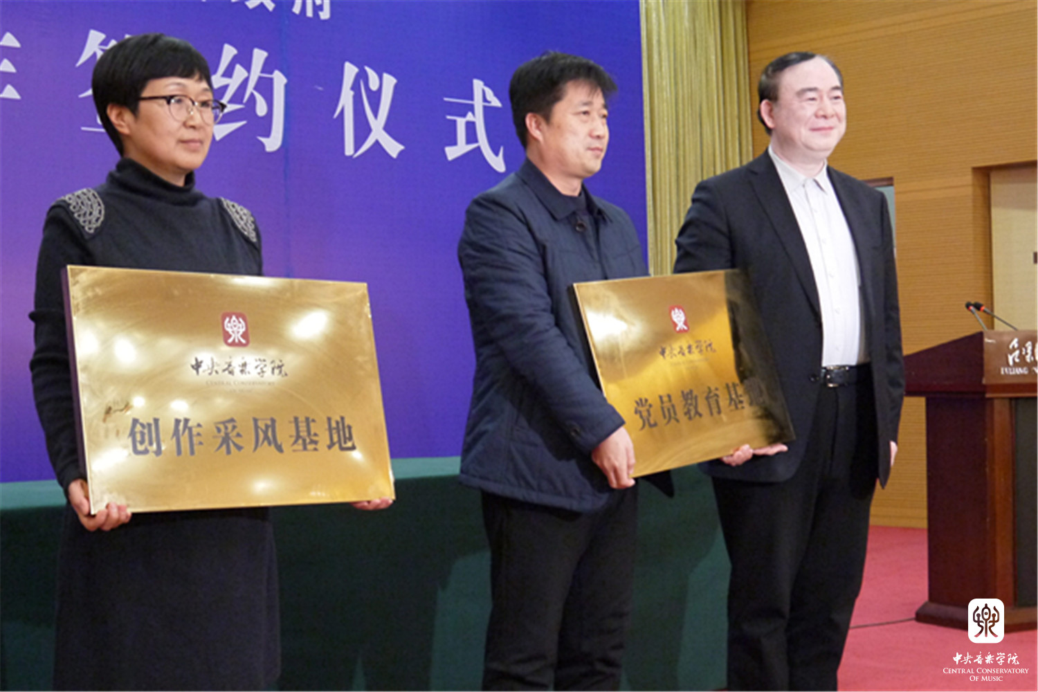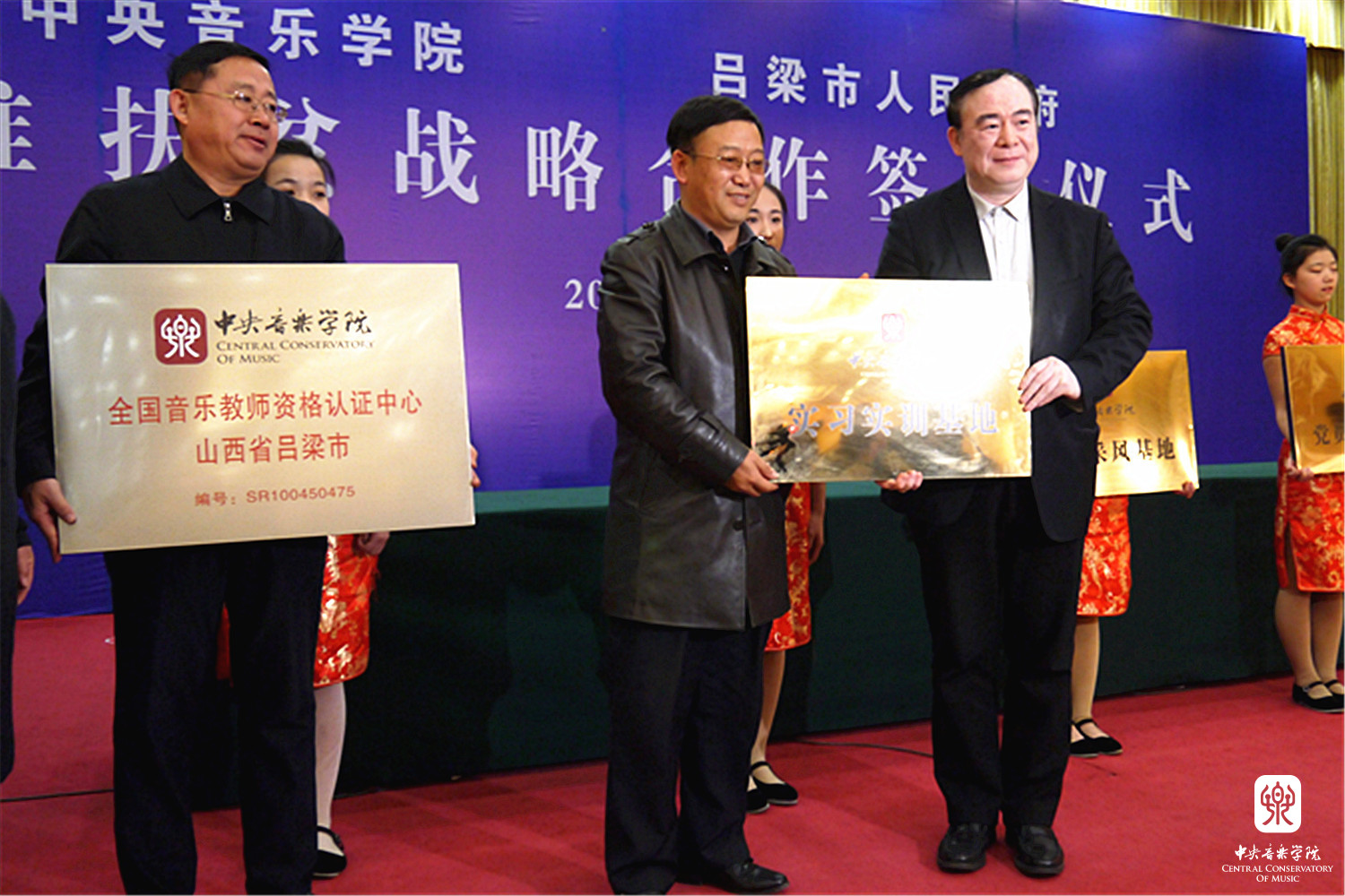 俞峰院长分别向吕梁市艺校等单位授牌