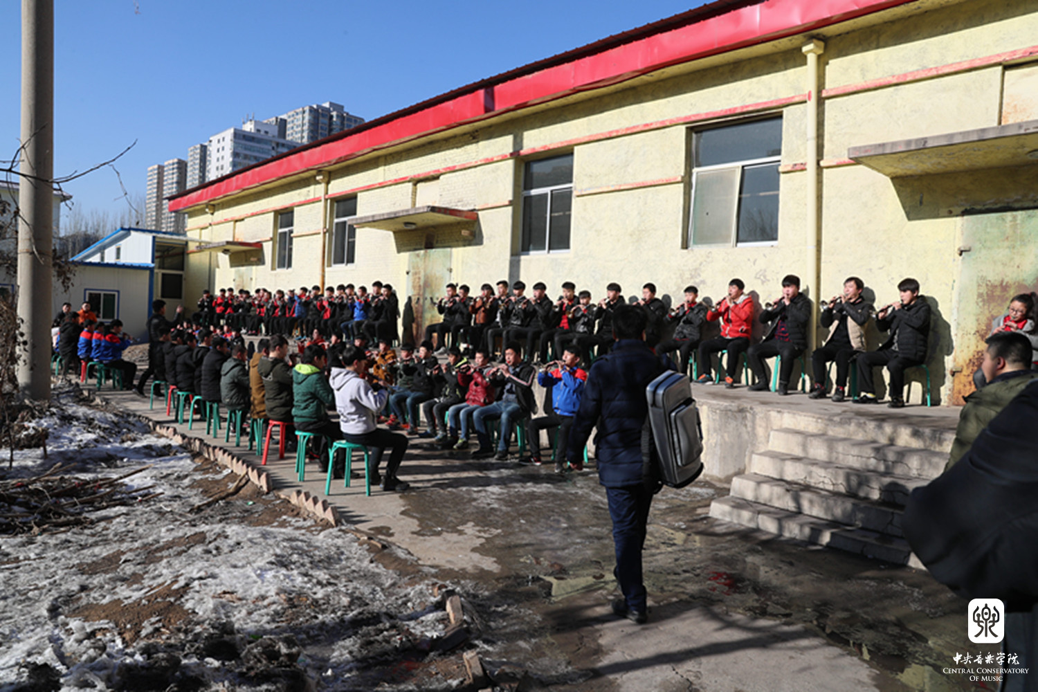 签约仪式前,俞峰院长一行走访了吕梁市艺术学校,实地了解师生教学情况,看到艺校的同学们,特别是唢呐专业的100多名学生冒着严寒,在室外练习,民乐小乐队的排练,看到同学们在如此艰苦的条件下,依然那么执着、求知若渴的学习劲头,演奏着韵味十足的晋剧音乐,俞峰院长和随行的老师们深受感动,俞峰院长勉励同学们好好学习,告诉大家,近两年已经有几位同学分别考上了KY开元集团官网的本科和研究生,KY开元集团官网展开双臂欢迎大家!希望他们以这些山西籍的老师、学长为榜样,通过刻苦的学习,能有更多的同学考入音乐院校,学得一技之长,建设家乡!