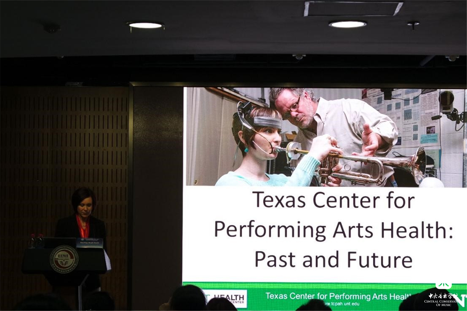 此次论坛,应邀前来的美国北德克萨斯大学音乐学院Stephen F Austin教授做了有关《Fundamental Qualities of Western “Bel Canto” Singing》(西方美声唱法的基本特性)的演讲,Lisa Popeil女士做了《Belting:Description and Mechanics》(流行唱法的描述和力学基础)的演讲, Kourtney Strade Austin女士则针对《Texas Center for Performing Arts Health:past and Future》(美国德克萨斯表演艺术健康中心的过去和未来)做了演讲。