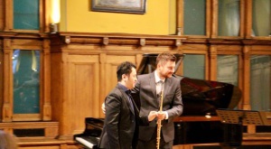 | 代博(左)与波兰长笛演奏家乌卡什·德乌戈什上台谢幕 |