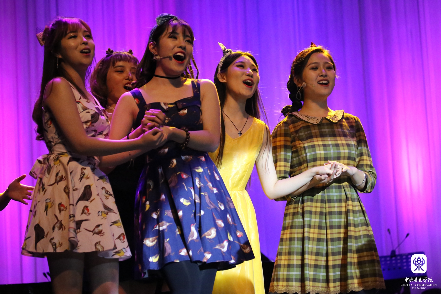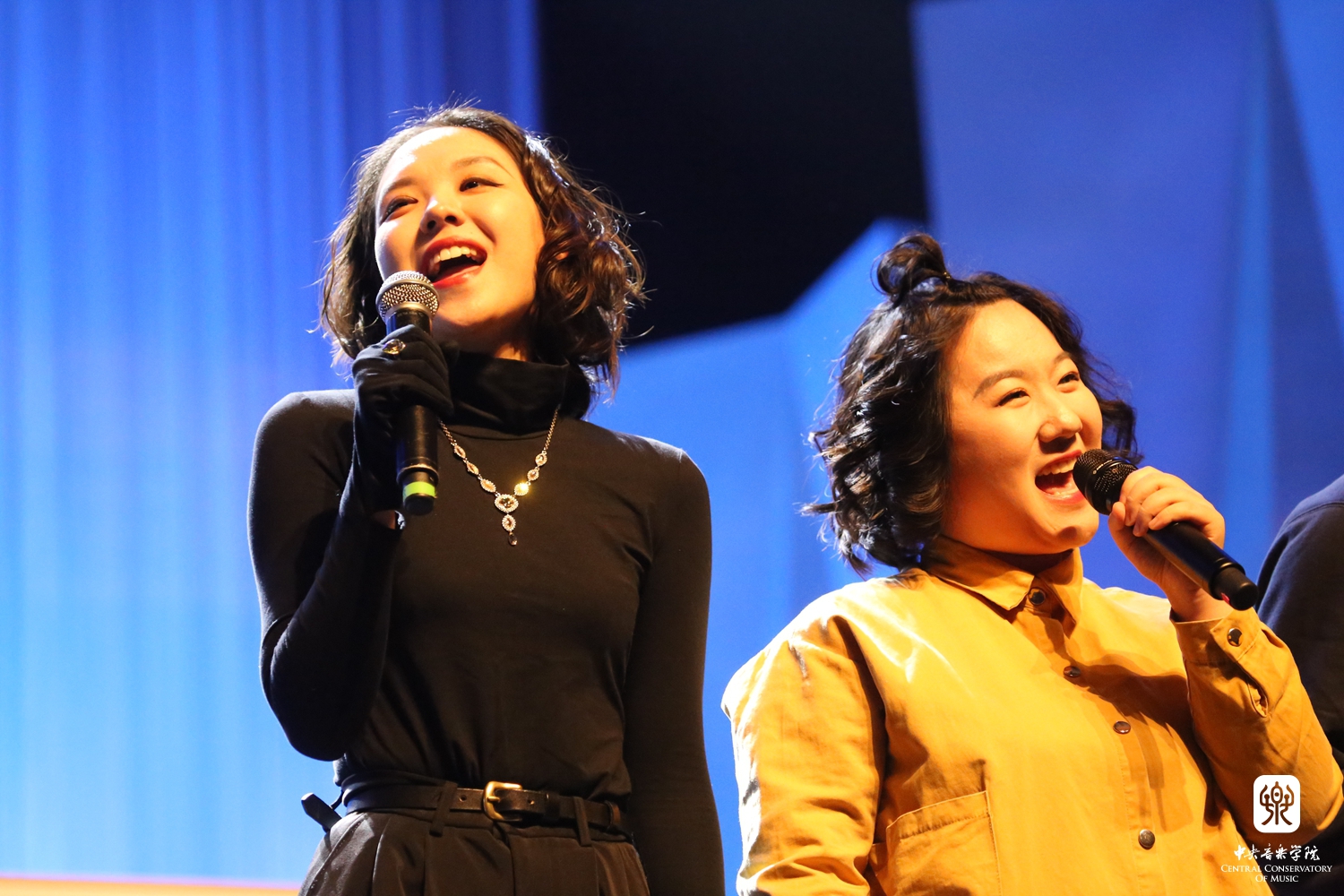 本届开幕式还将戏剧表演结合舞蹈、诗歌、音乐呈现在舞台之上,有戏剧化的丑角表演,有当代室内乐与法国诗句相结合的音乐+视觉作品。最后,开幕式在充满青春活力的音乐剧歌舞片段中结束了整场长达两个小时的演出吗,两段音乐剧小品的表演者是来自音乐剧表演选修课上的同学们,他们在没有任何音乐剧训练的条件下,经过一个学期的课堂学习和排练,排出了两段经典歌舞节目,在两位留学美国归来的刘佳老师和于点老师的指导下,同学们演出了令人惊奇的效果。