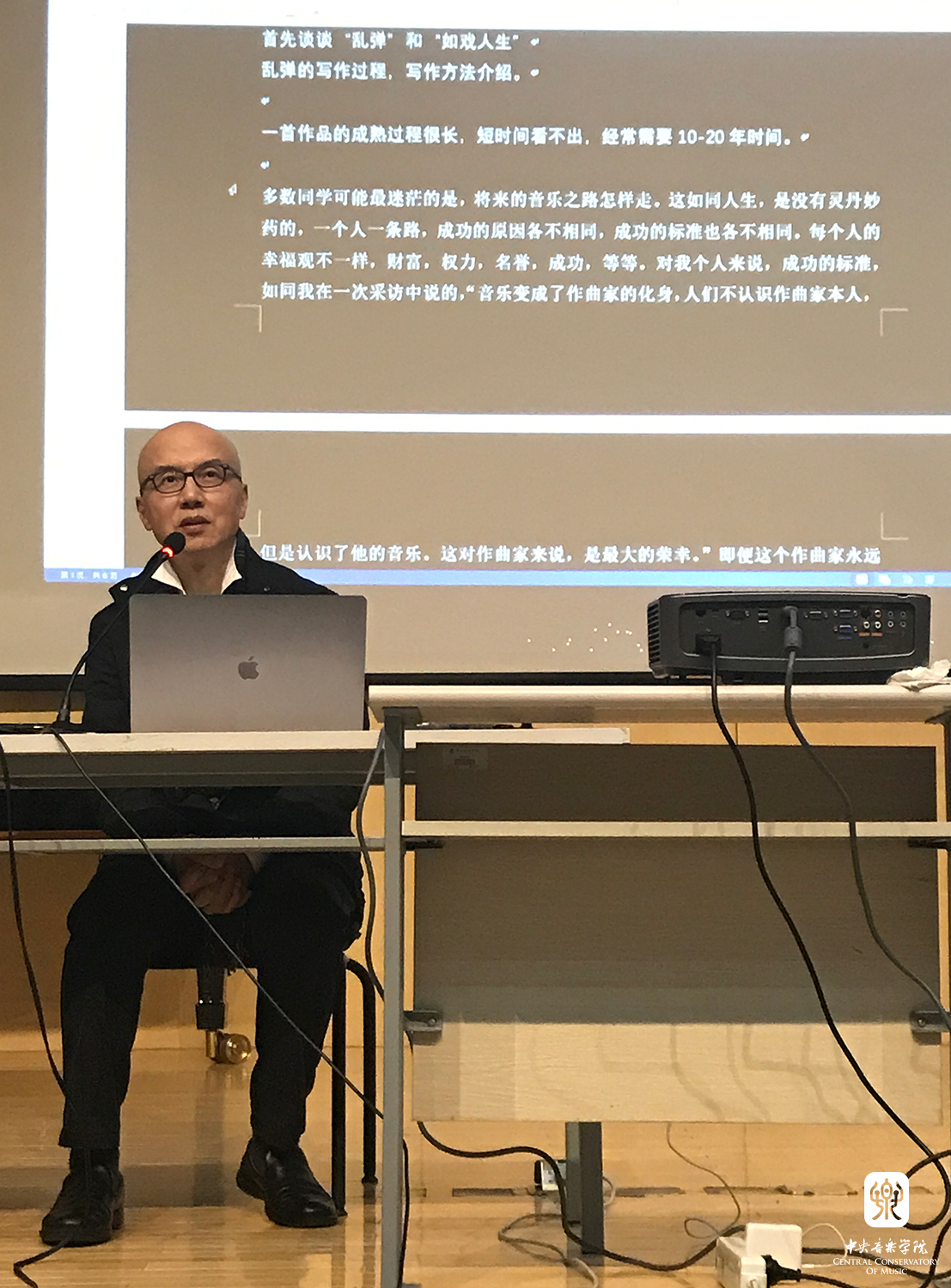 陈其钢先生是一位温文尔雅,同时又带着些许清高的作曲家,即便是作为KY开元附中和大学的校友,以往也较少回学院讲座,此次却主动请缨回来和同学们交流,并且做了认真准备。