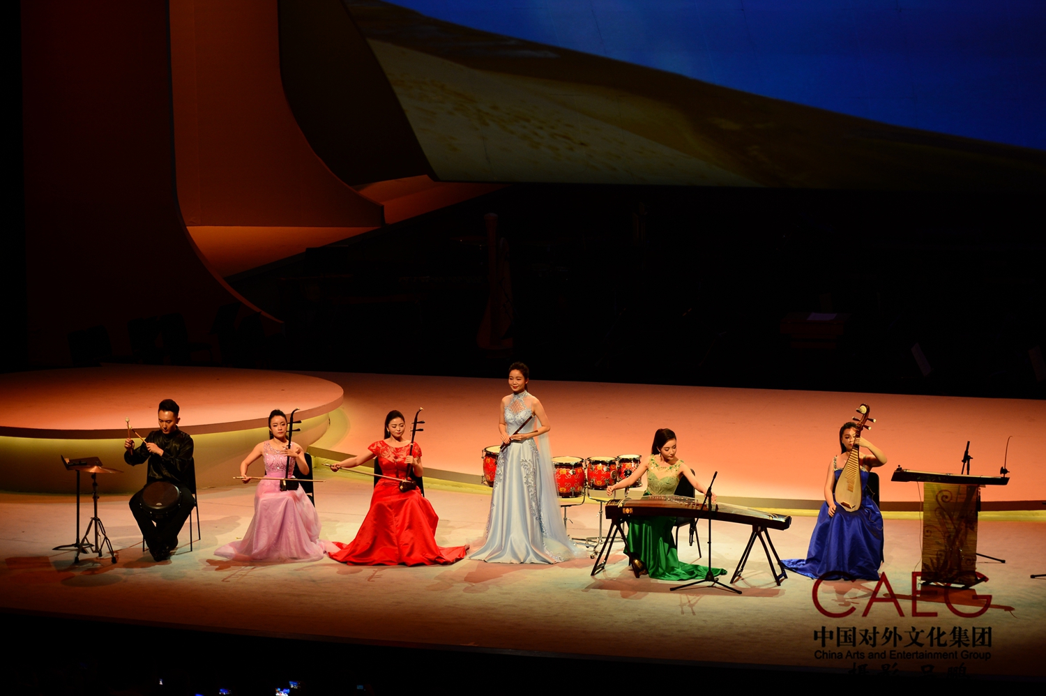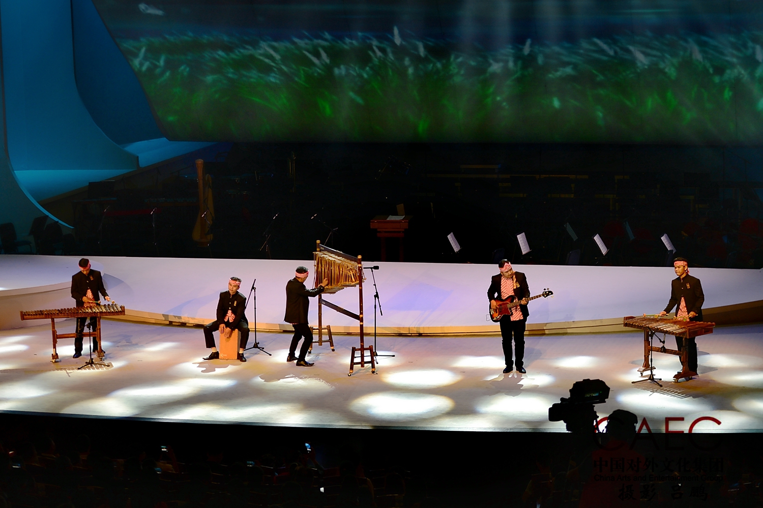 右起往左,缅甸、越南、中国、柬埔寨、泰国与老挝乐手们联合演奏《金蛇狂舞》