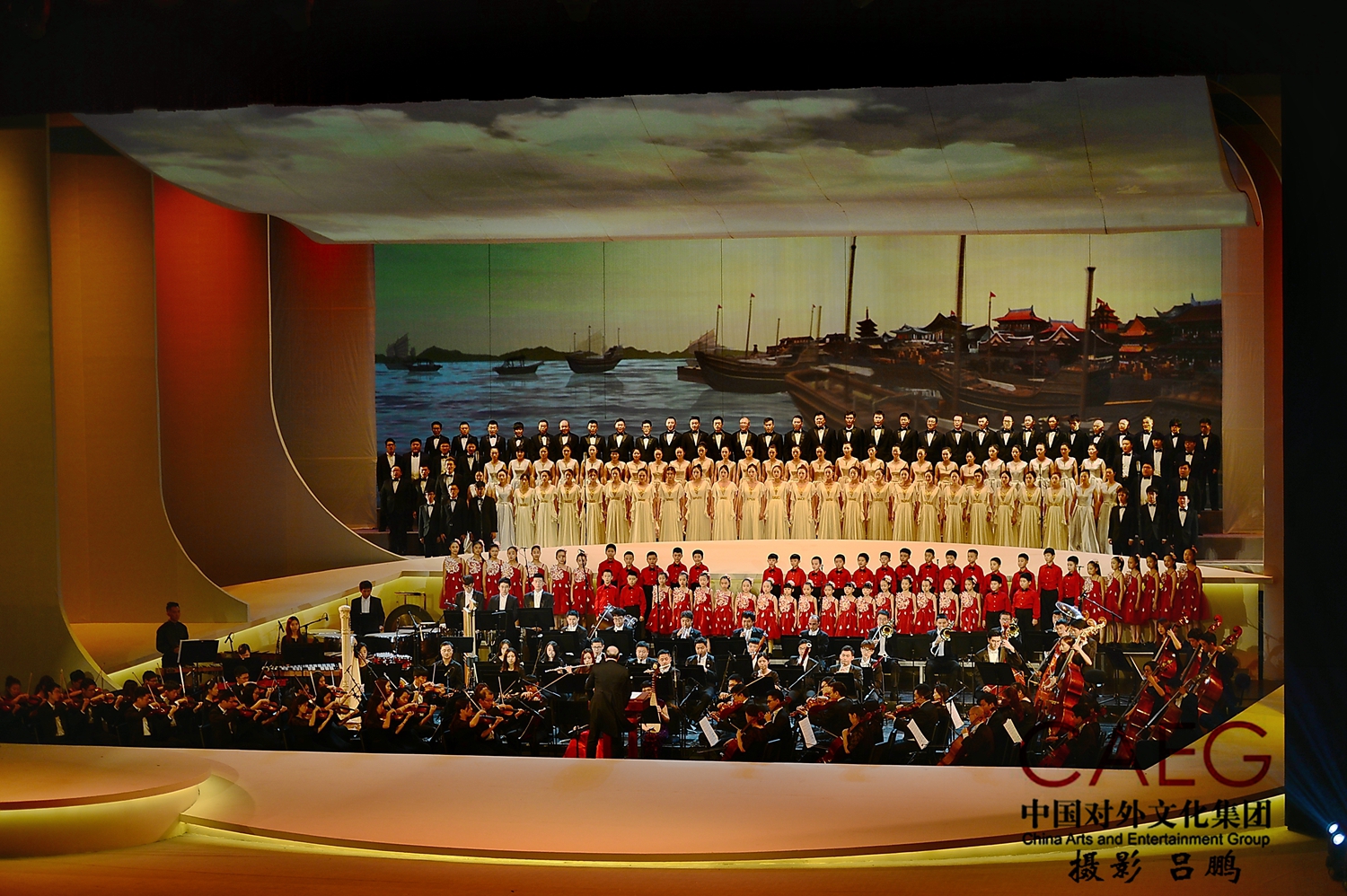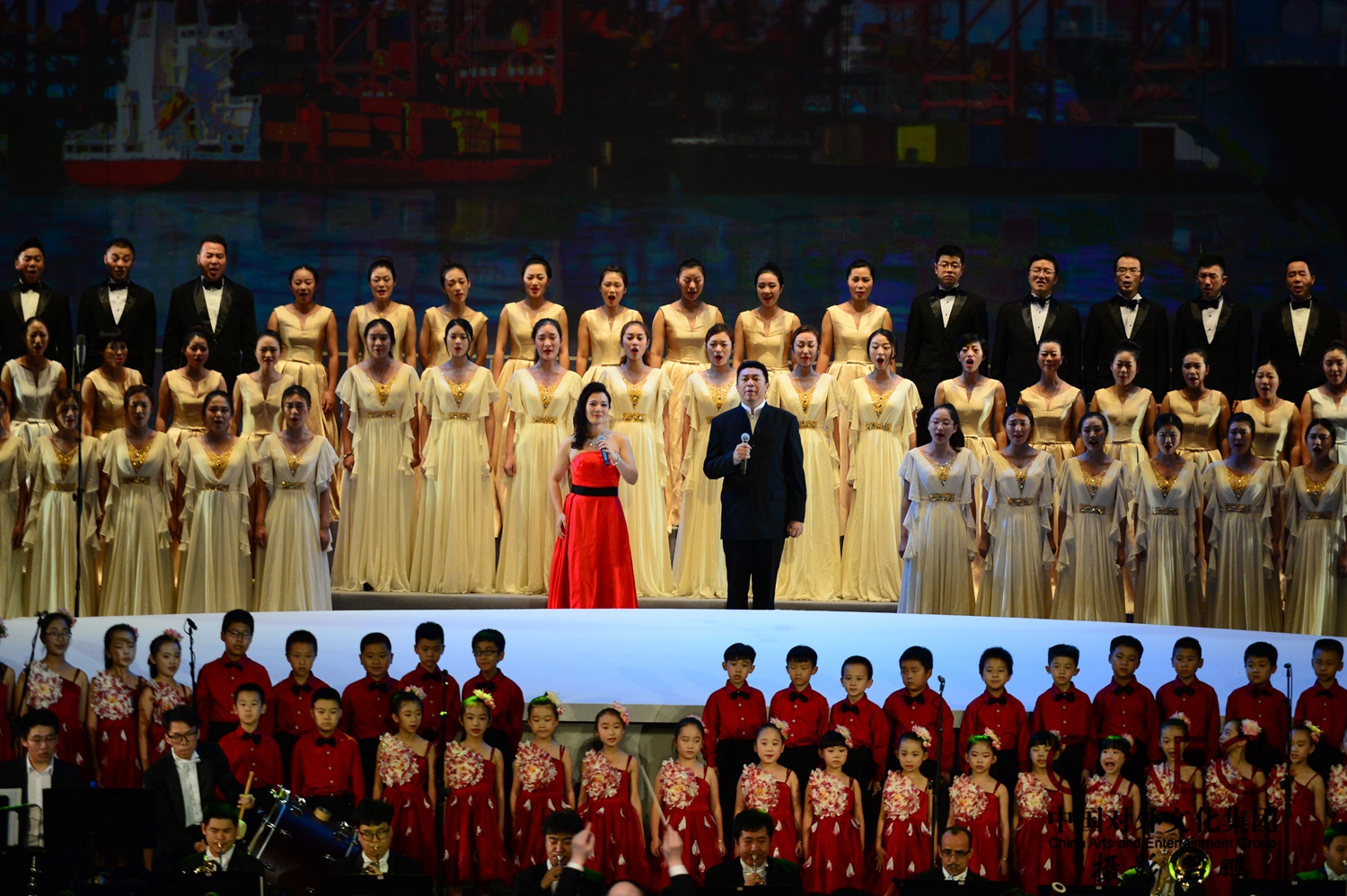 交响诗《笑迎天下》 交响演奏:宁波交响乐团; 交响合唱:宁波合唱团、浙江音乐学院合唱团; 童声合唱:宁波儿童合唱团 | 俞峰院长在尽情的指挥中 | 宁波交响乐团、浙江音乐学院合唱团宁波市合唱团、 CAC宁波呐豆少儿合唱团表演交响曲《港通四海》 |