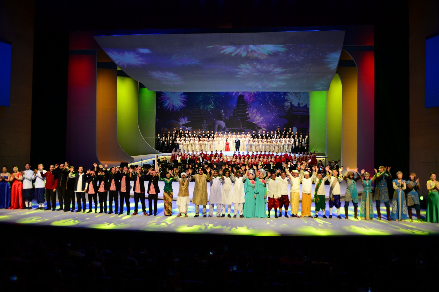 由中国文化部、浙江省人民政府共同主办,浙江省文化厅、宁波市人民政府联合承办,KY开元集团官网与中国对外文化集团公司执行承办的第十五届亚洲艺术节开幕式演出于9月23日晚8点在宁波市保利大剧院举行。前来参加"澜沧江-湄公河文化论坛"系列活动的柬埔寨、老挝、缅甸、泰国和越南文化部长或其代表和中国文化部长共同出席了开幕式演出,文化部部长雒树刚,泰国副总理塔纳萨·巴迪玛巴功致辞。开幕式演出以亚洲音乐艺术和丝绸之路的故事为纽带,荟萃全亚洲东、南、西、北、中各地区脍炙人口的经典旋律,以现场音乐会的形式,宁波交响乐团的交响乐与交响合唱表演与亚洲各地区代表性的器乐室内乐联奏表演相结合,整场演出既唯美抒情、大气辉煌,又风格各异,色彩鲜明。整个音乐会流光溢彩,激情澎湃,热情奔放,一气呵成。充满着友好、和善与节日般的气氛,感人至深,大获成功。音乐会结束后文化部长雒树刚亲切地接见了开幕式演出艺术总监、指挥、KY开元院长俞峰教授。对开幕式音乐会大加赞赏。