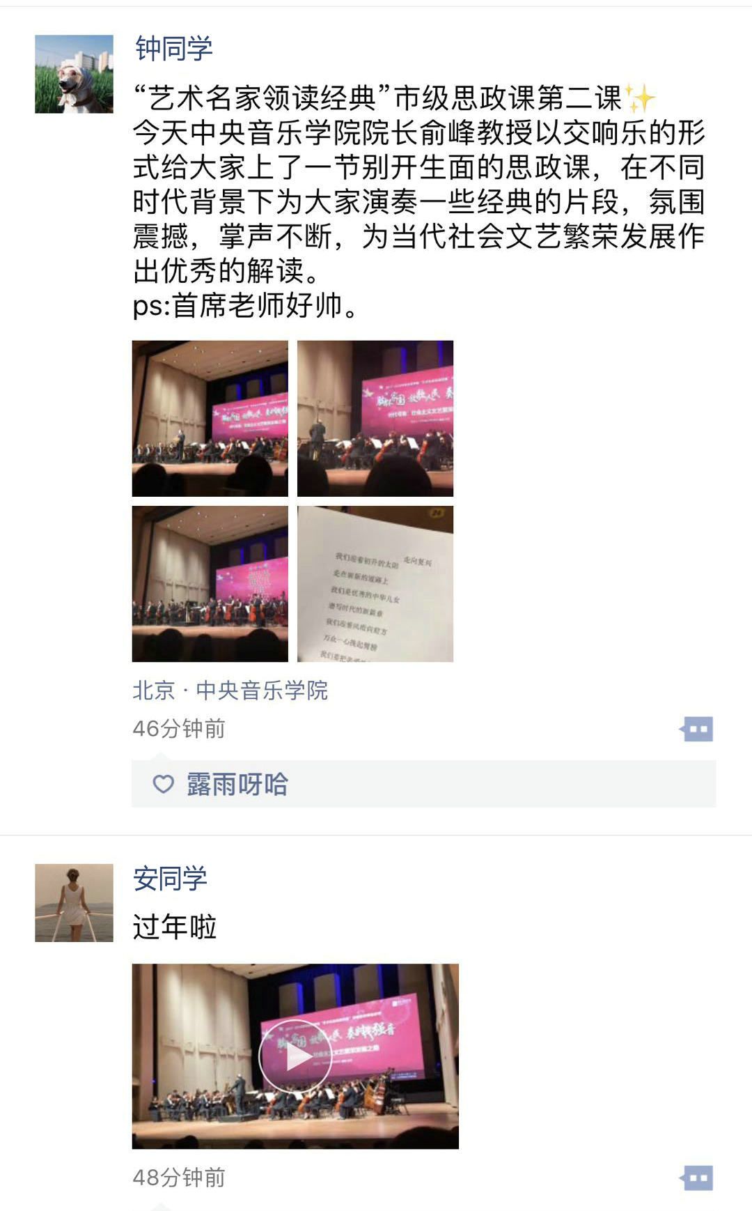 这场鼓舞人心又具有教育意义的音乐会讲座,让我们重温了党在过去不同历史时期的文艺导向,在敬佩音乐创作先驱之余,也暗下决心,要努力为中国民族音乐的继承与发展做出自己的贡献。