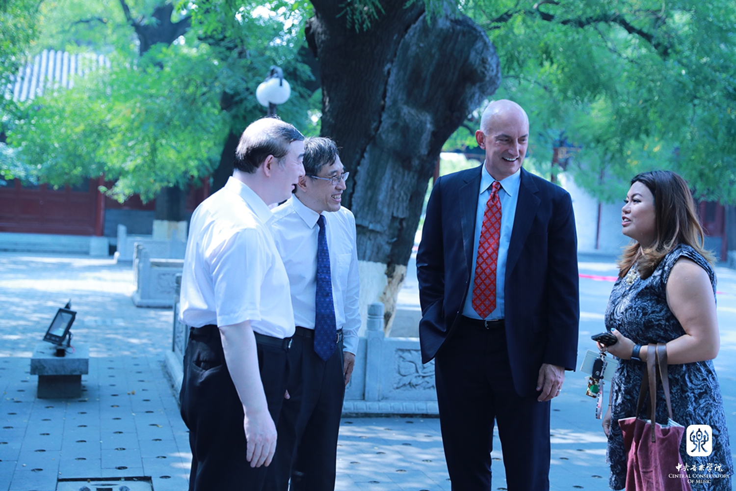 会谈气氛轻松愉快,双方在教师交换、学生交流、中国民族音乐推广等方面达成了初步共识。在俞院长等人的陪同下, 詹姆斯·甘德雷院长参观了图书馆、琴房楼、排练厅、音乐厅和歌剧音乐厅等学校教学设施,并观摩了歌剧排练、管风琴大师课等。