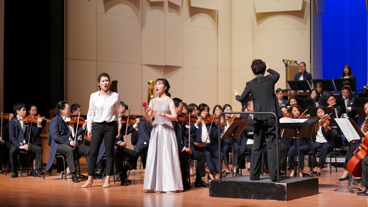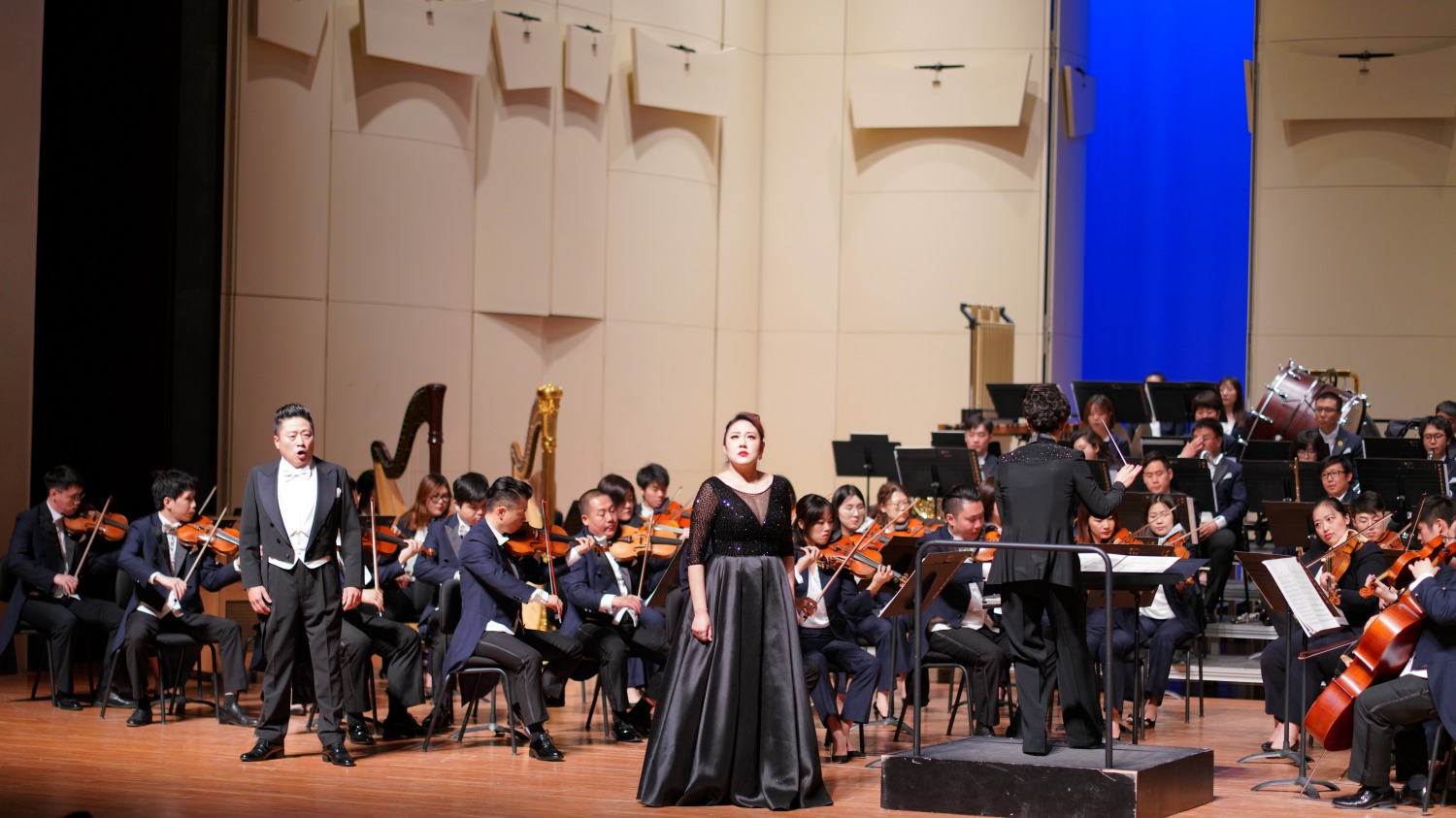陈冰副教授执棒KY开元集团官网交响乐团带来《自由射手》序曲拉开了整场音乐会的帷幕。随后,声乐歌剧系新入职教师为大家献上旋律丰满、娴熟感人的的咏叹调。激动人心的音乐倾泻而出,观众立刻被咏叹调的魅力所吸引,不由自主陶醉其间。教师们强大的气场与浑然的阐释将所有观众的注意力都带入了音乐本身的美感之中。
